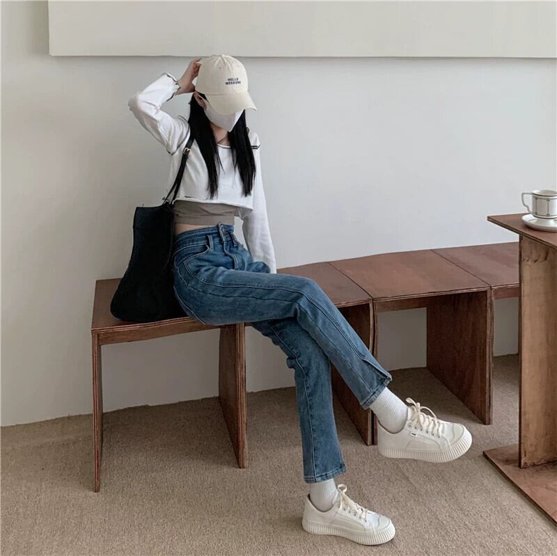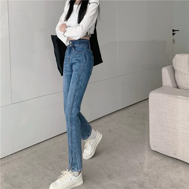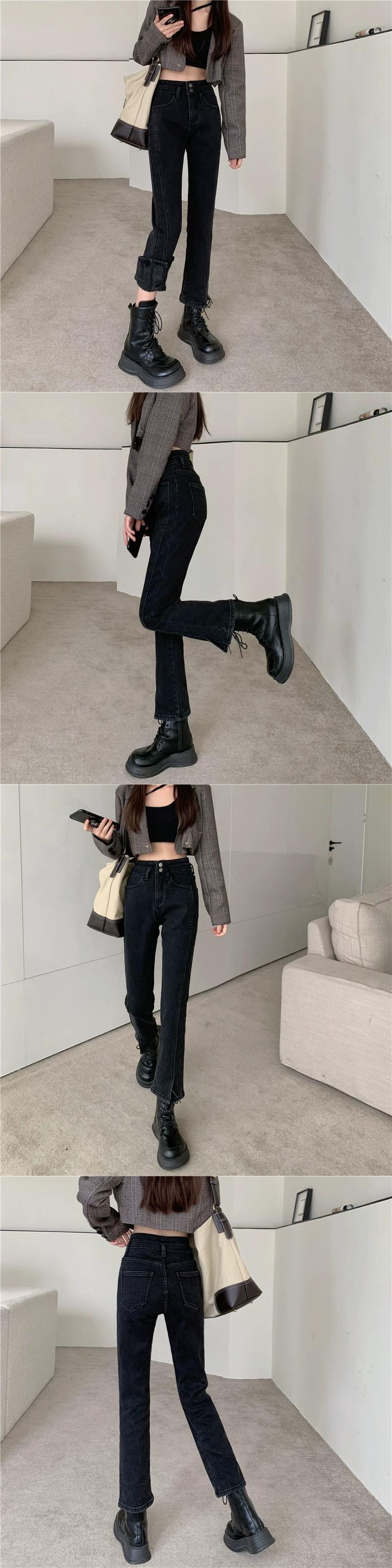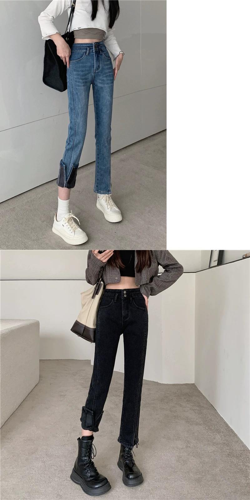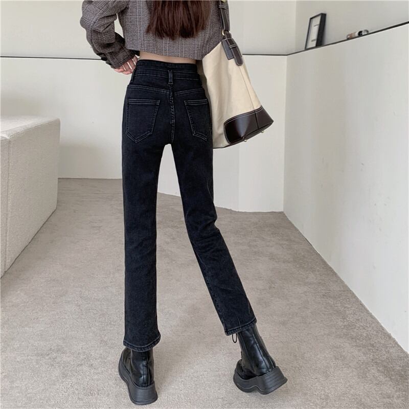 秋冬のソリッドカラーストレッチジーンズ女性肥厚ハイウエストナローバージョンストレート大きいサイズファットミリメートルスリミング9ポイントタバコパイプパンツ 大きめサイズ オータム 秋物 ウィンター 冬物 8884160592262918