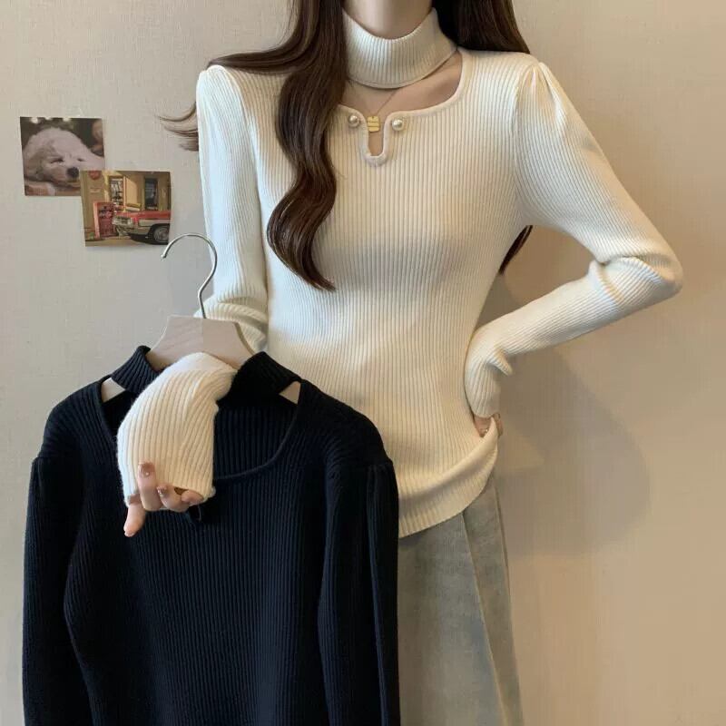 プラスサイズの女性のセーターの女性の秋と冬 2023 新しいファット MM ファッション痩身中空パールネックスリーブシックなトップトレンディ 大きめサイズ オータム 秋物 ウィンター 冬物 真珠 8884162395592145