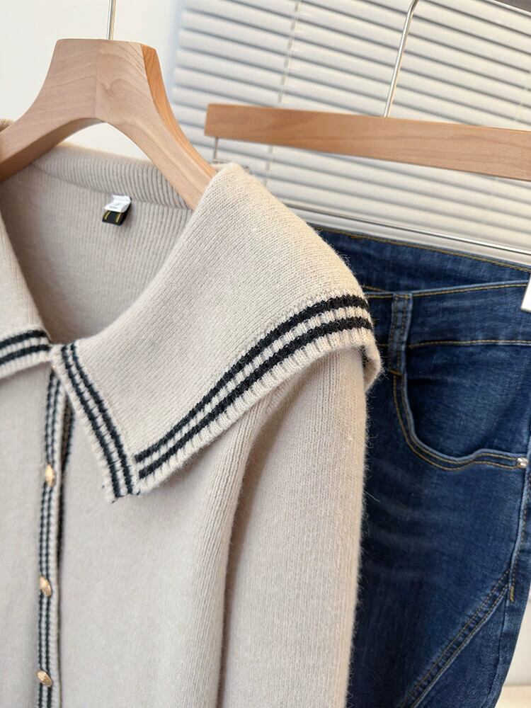 プラスサイズの女性の 2023 トレンディな秋スタイル脂肪姉妹年齢削減人形の襟ニットカーディガン厚いセータージャケットトップ 大きめサイズ オータム 秋物 8884182180720996