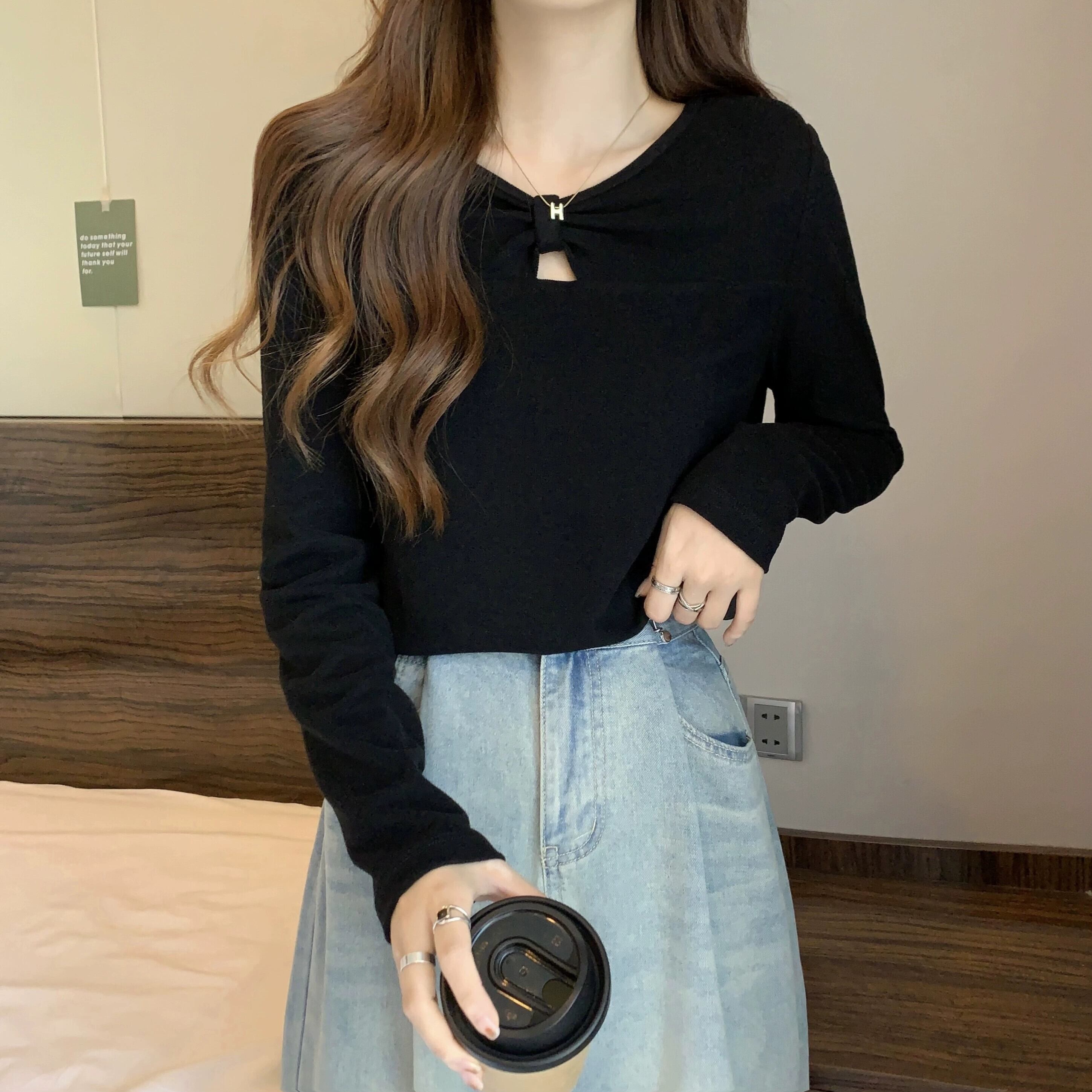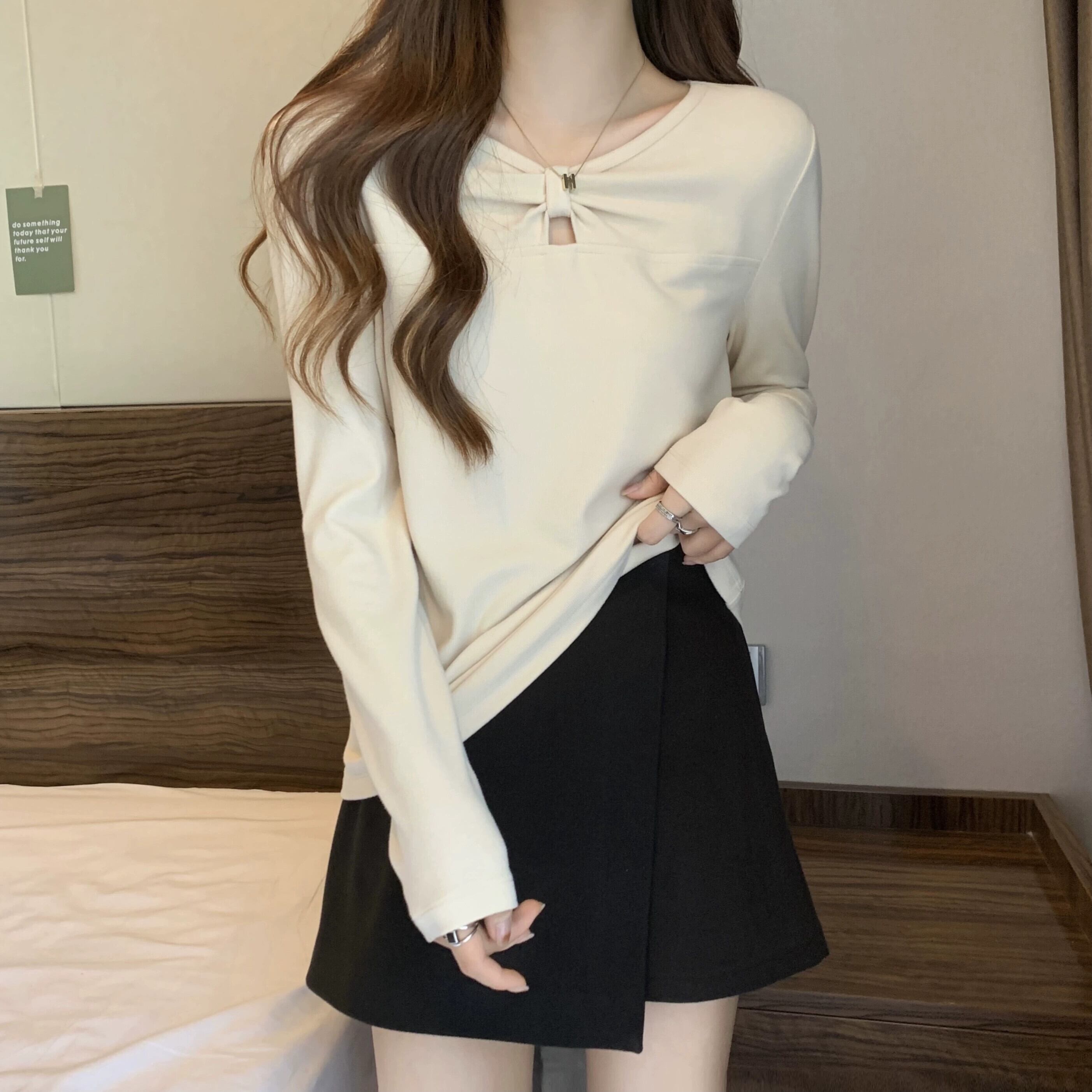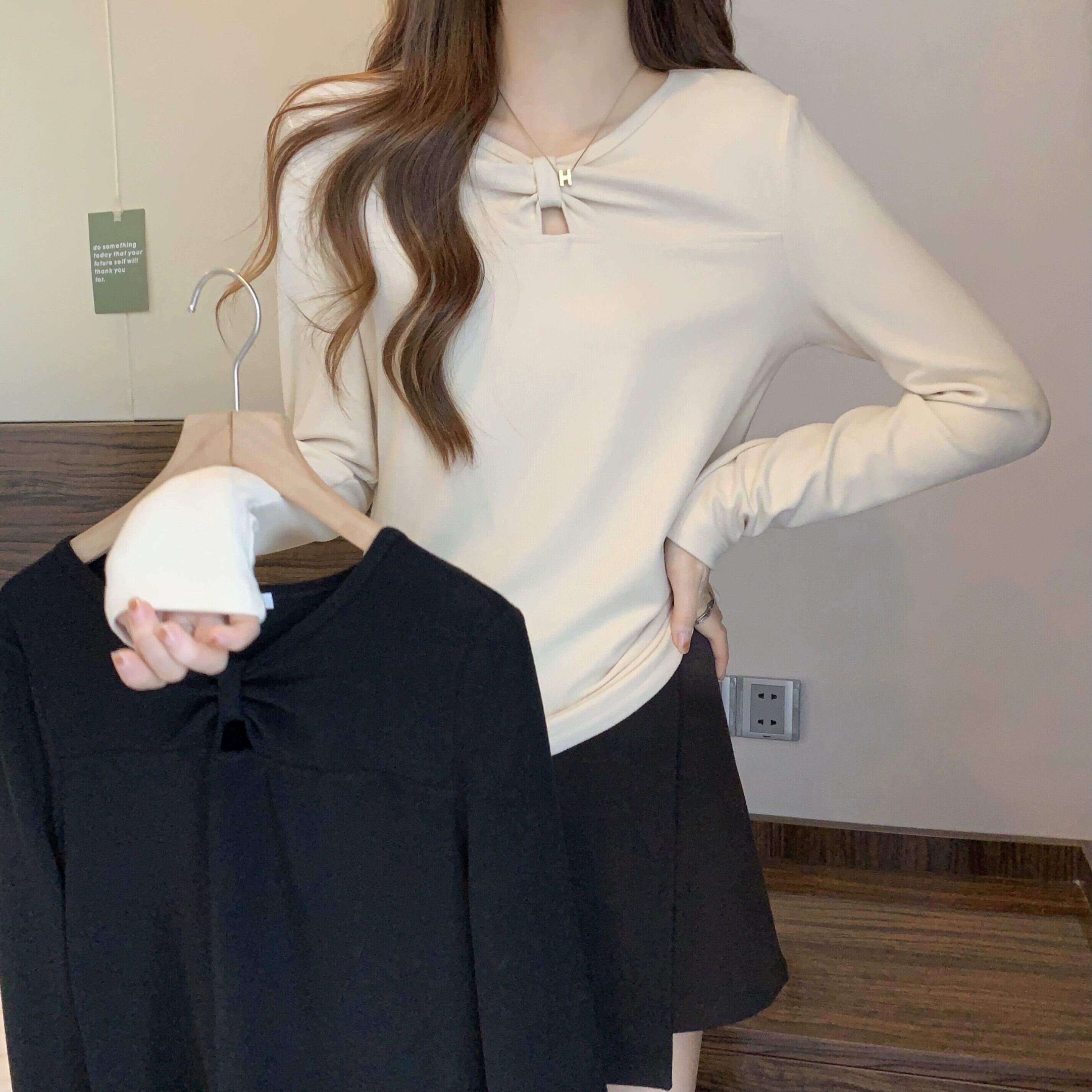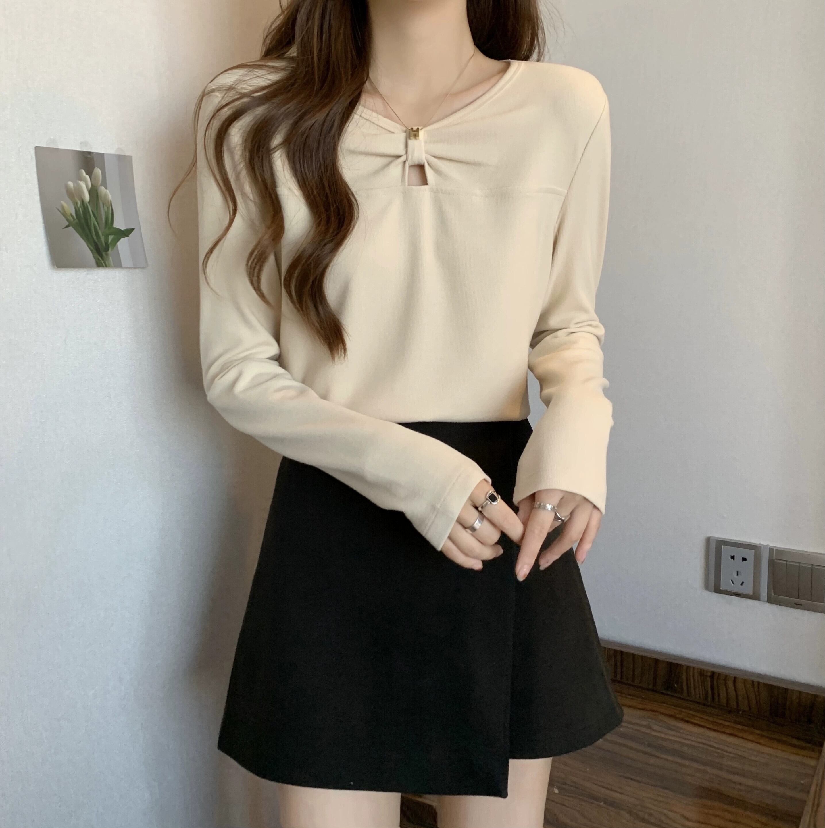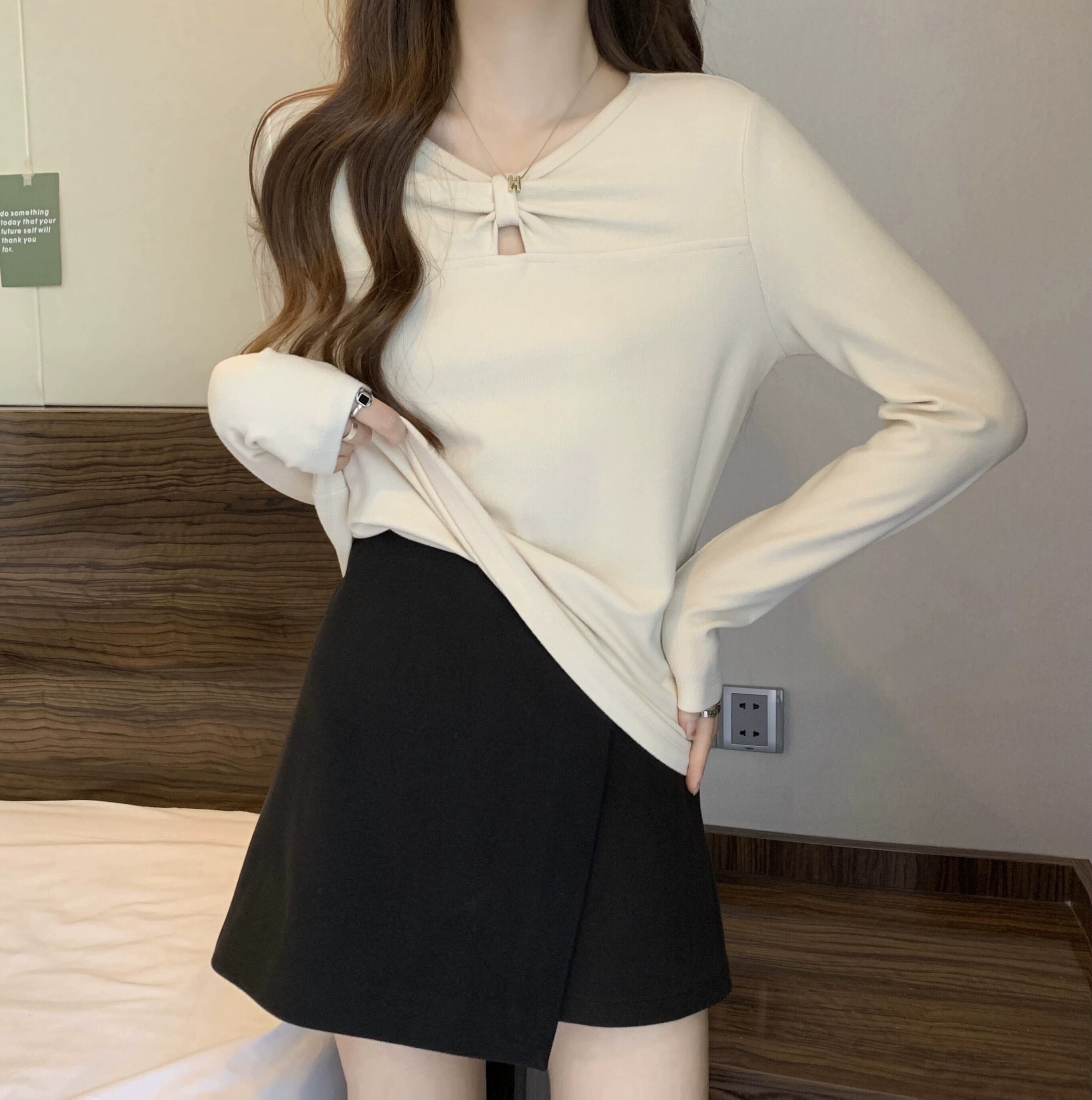 大きいサイズのドイツベルベットボトムシャツ女性は秋と冬に着用します、ファットmmプラスベルベットと厚みのあるデザインの中空Vネック長袖トップトレンディです ロング 大きめサイズ オータム 秋物 ウィンター 冬物 8884165334382039
