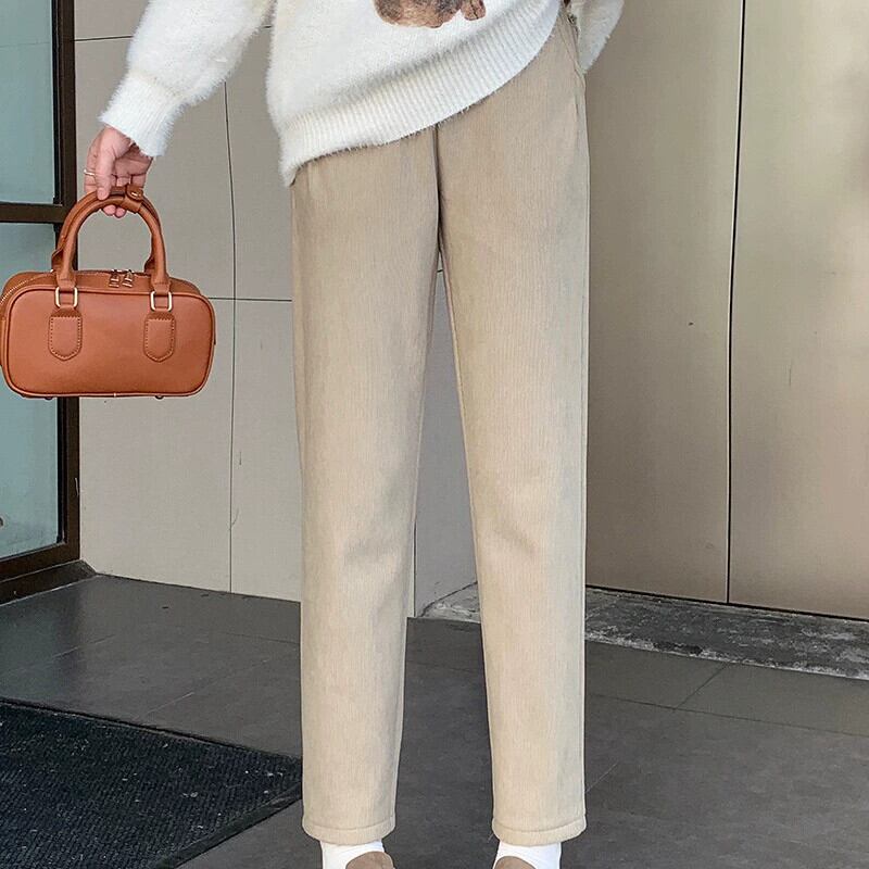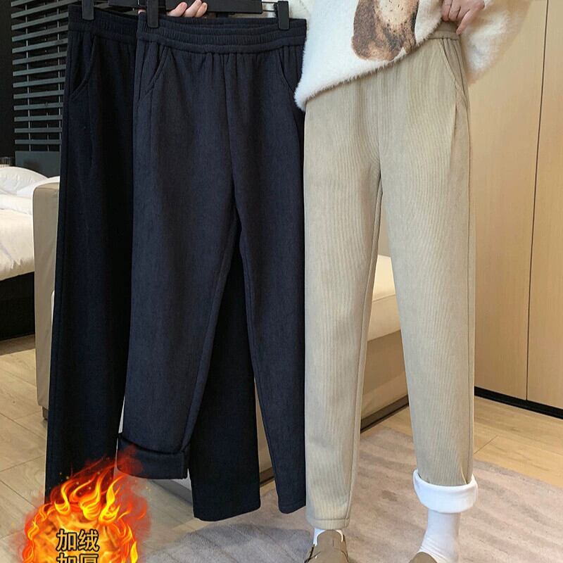 プラスサイズの婦人服ファットミリメートル秋の新 2023 ベルベット肥厚カジュアルパンツスリミングハイウエスト股をカバー気質ニッチズボン ハイウェスト 大きめサイズ オータム 秋物 8884143914754353