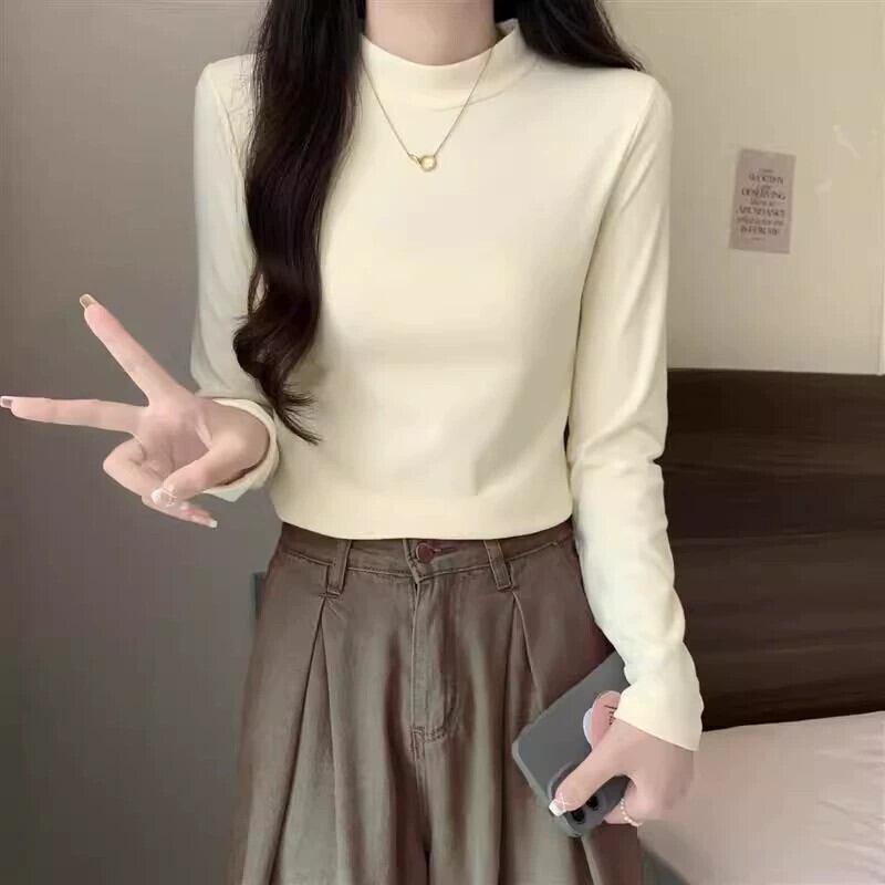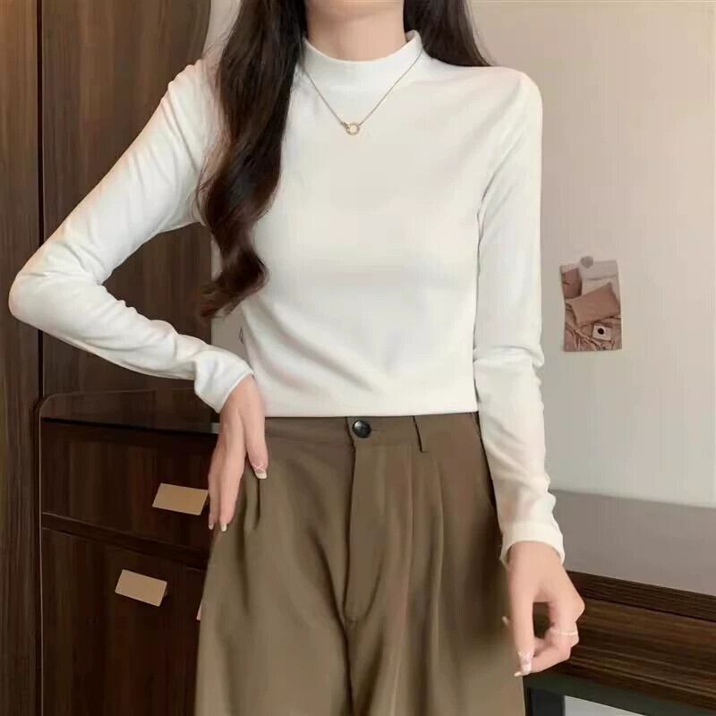 大きいサイズの脂肪 mm ハーフタートルネックドイツベルベット底シャツ 2023 秋冬の新しいスタイルのインナー肥厚多目的 Tシャツ長袖トップ ロング 大きめサイズ オータム 秋物 ウィンター 冬物 8884146393838041