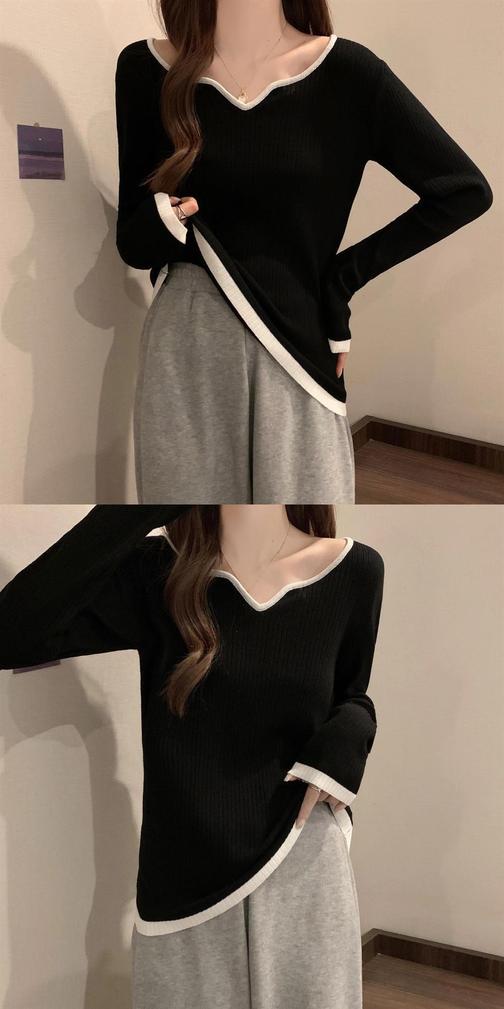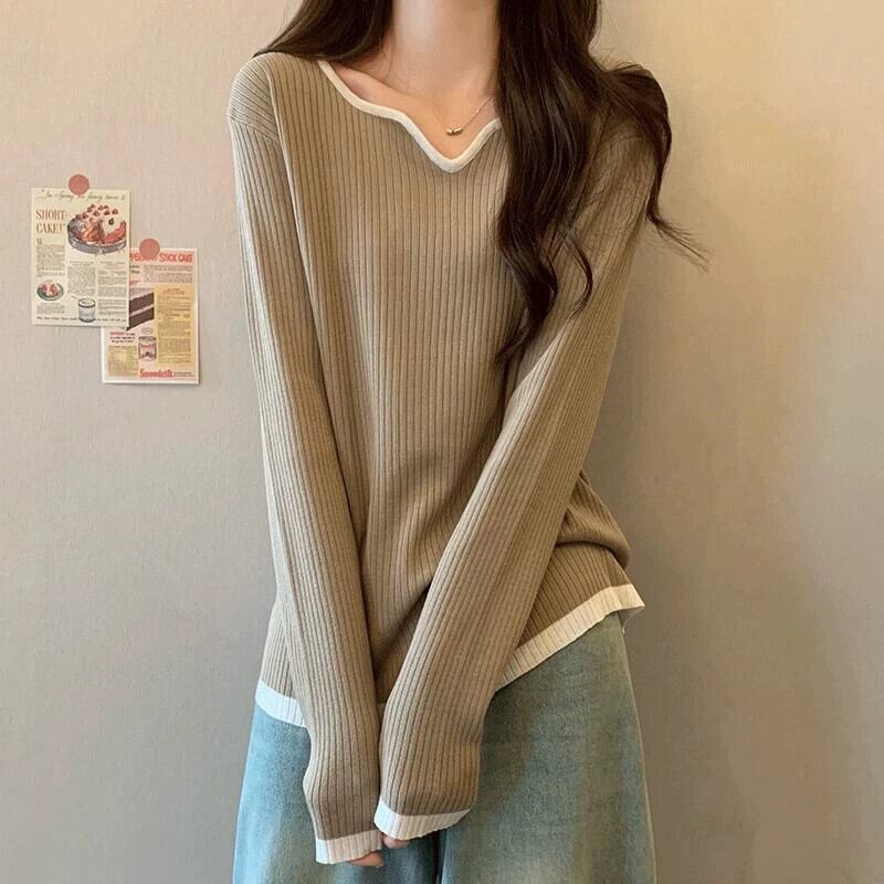 V ネックニットトップ肥満女性秋と冬の新しいプラスサイズの婦人服優しいスタイルファッショナブルな暖かい痩身インナーレイヤリングシャツ 大きめサイズ オータム 秋物 ウィンター 冬物 Vネック 8884194946627222