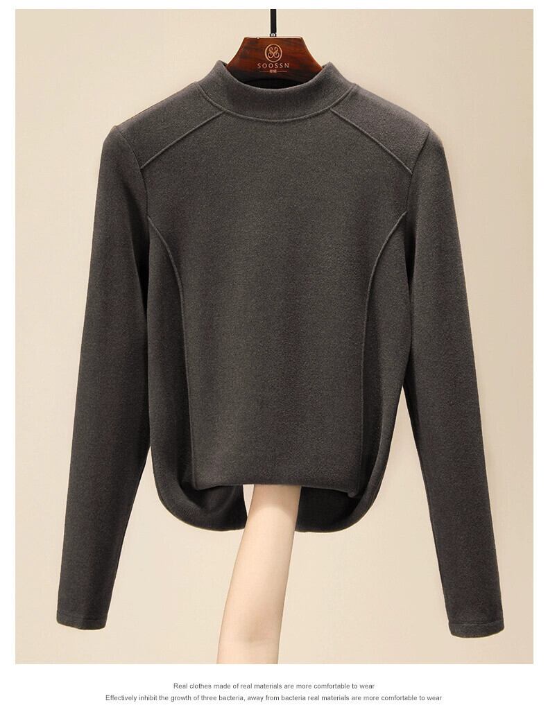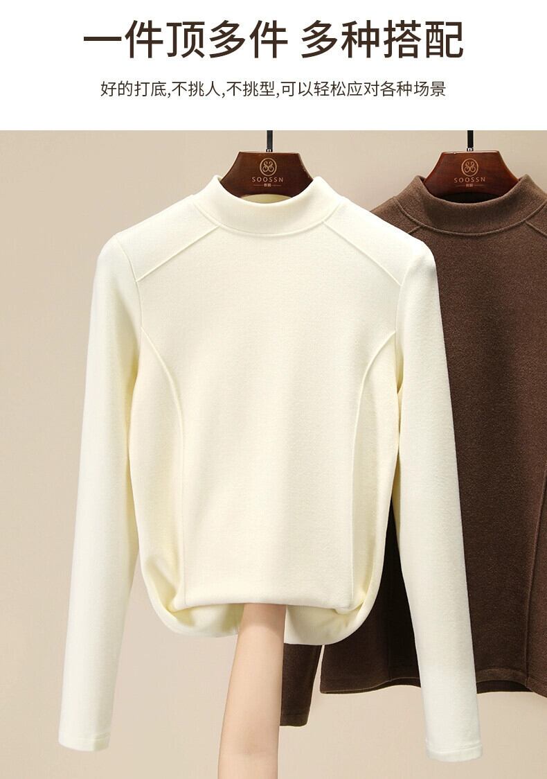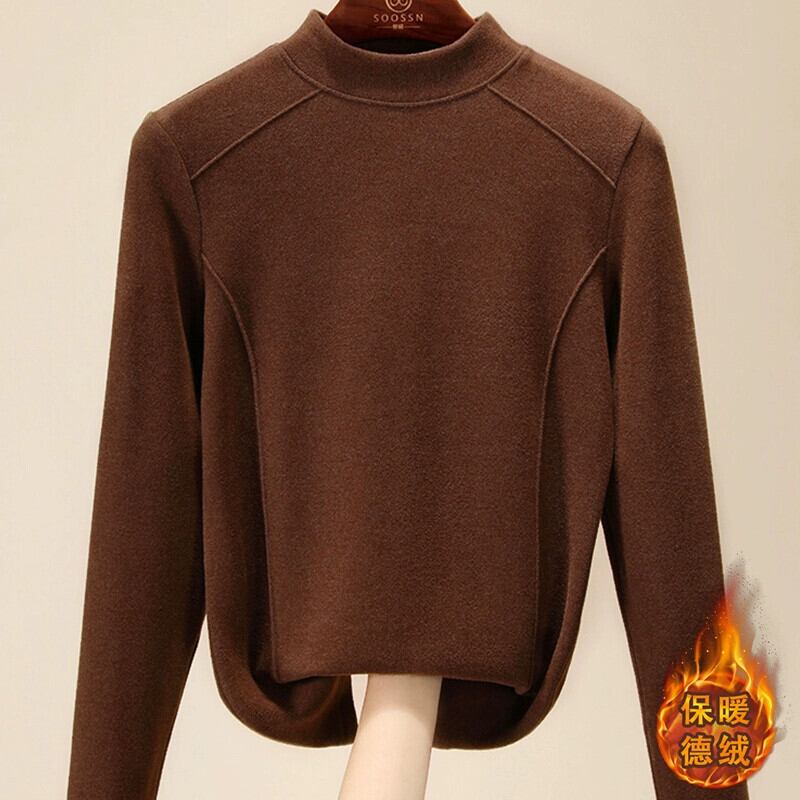プラスサイズの秋の新ソリッドカラーハーフタートルネックドイツベルベットボトムシャツ女性ファットMM両面ベルベット厚く暖かい長袖トップ ロング 大きめサイズ オータム 秋物 888412893314210