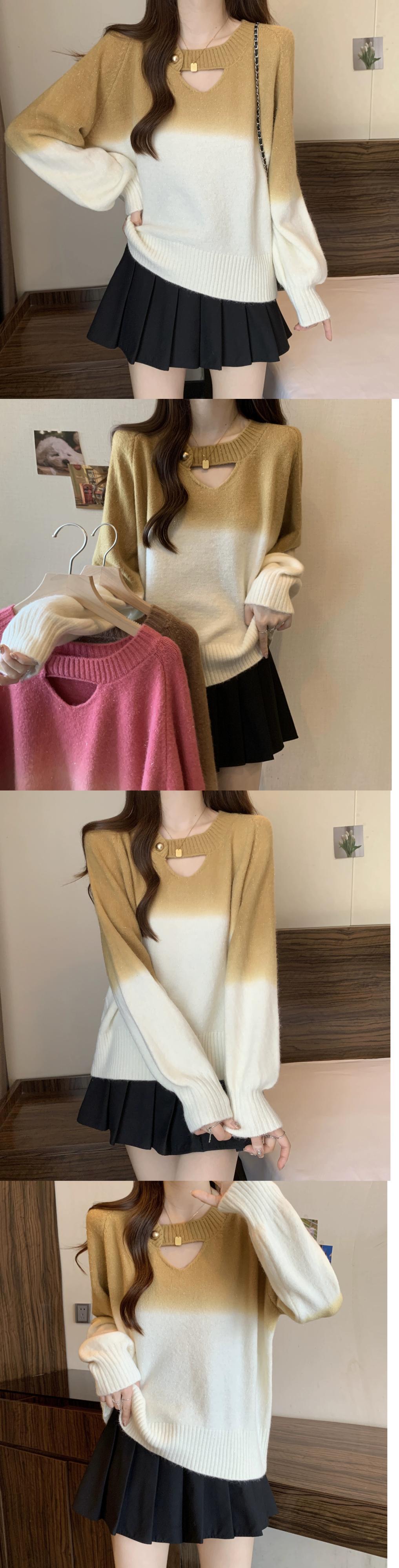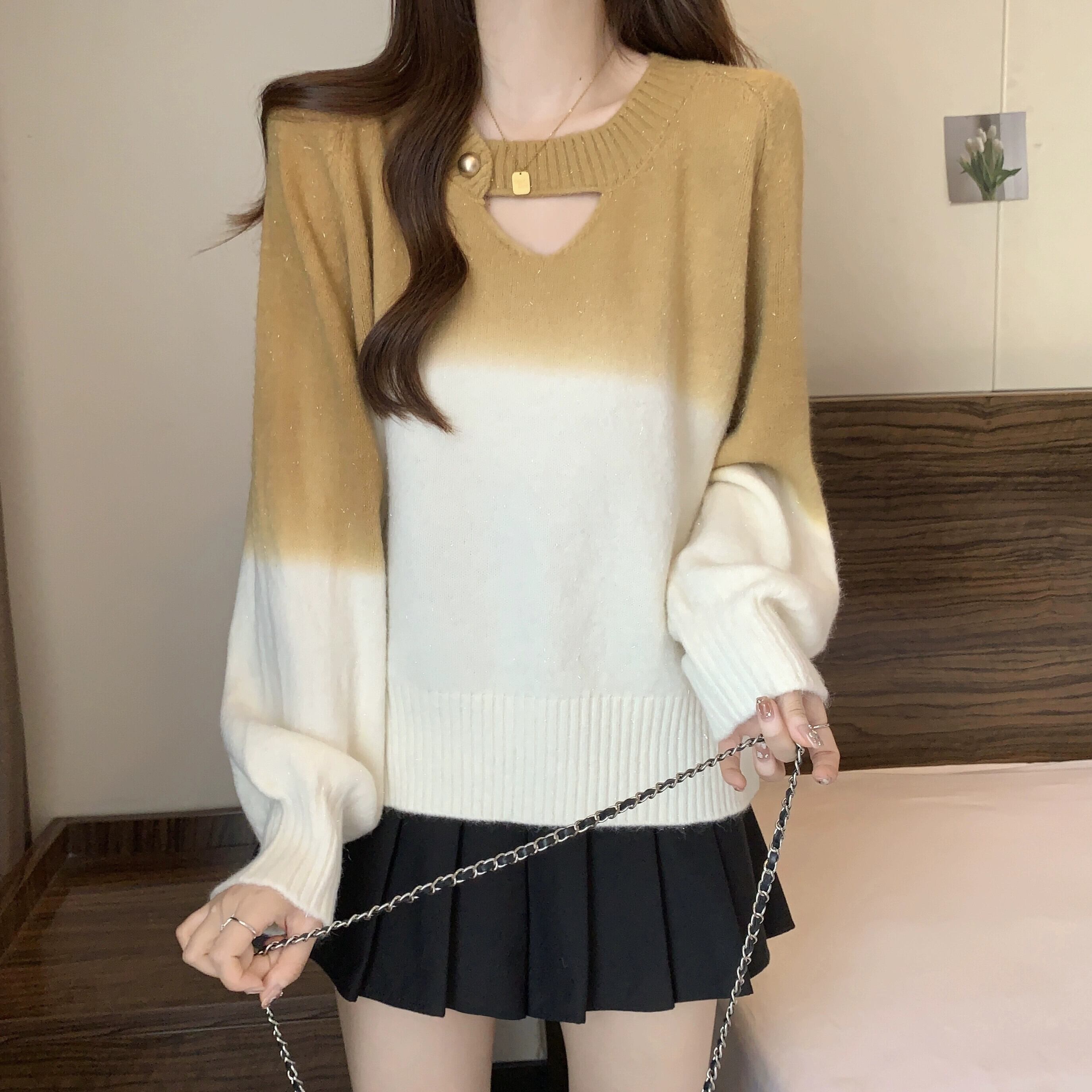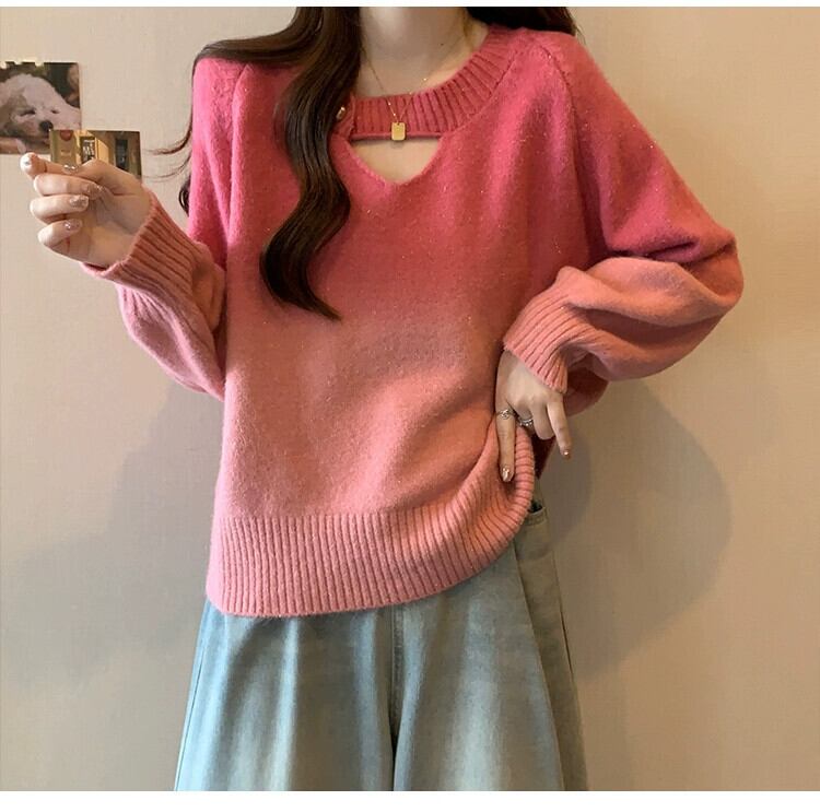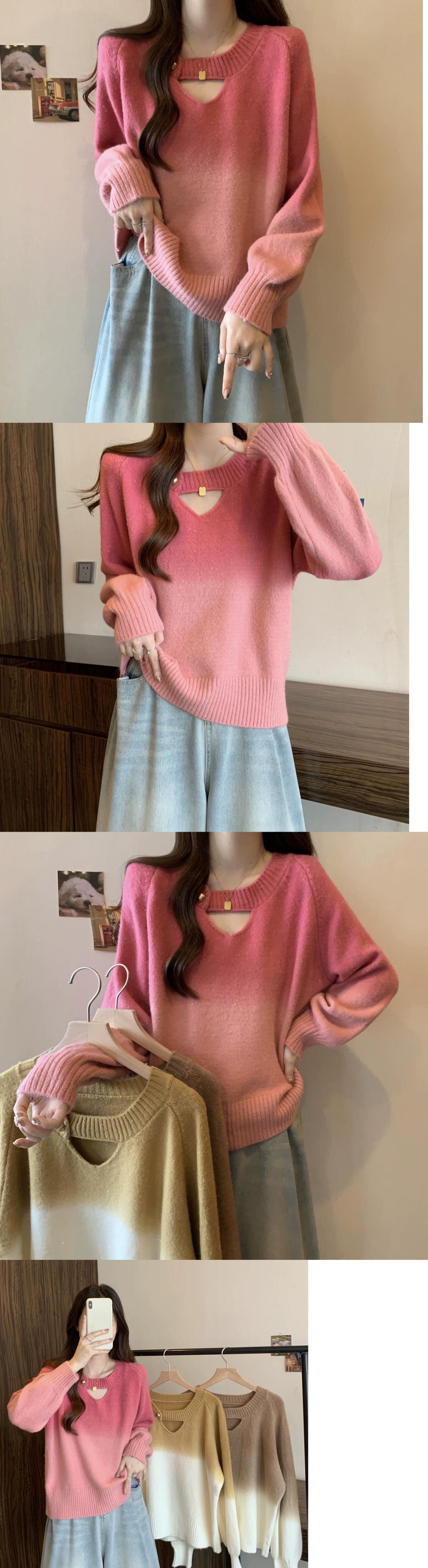 大きいサイズの女性のセーター女性の秋冬 2023 新しい緩いグラデーションカラーマッチングデザイン中空シックな痩身トップ 大きめサイズ オータム 秋物 ウィンター 冬物 8884147730978296