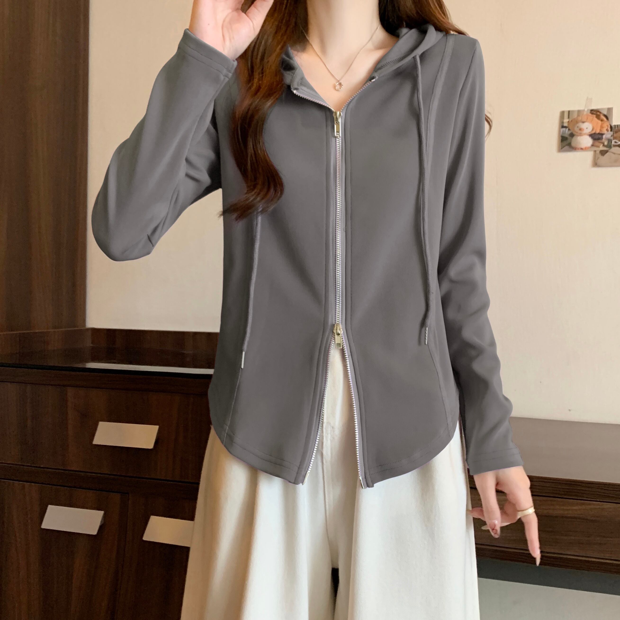 プラスサイズの女性の脂肪 mm デザインダブルジッパートップ冬の新 2023 肥厚フード付き腹カバーセーター 大きめサイズ ウィンター 冬物 888411803144750
