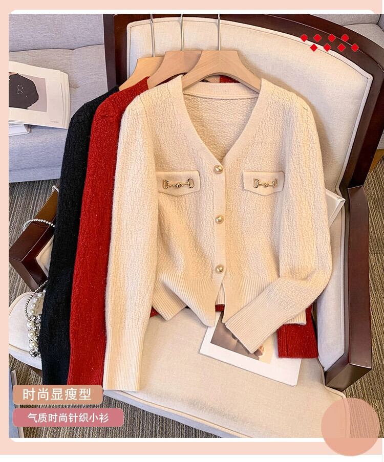 ニットセーター女性プラスサイズ 2023 秋と冬ファット mm ファッショナブルで多用途な V ネック長袖シングルブレストスリムカーディガンセータートレンディ ロング 大きめサイズ オータム 秋物 ウィンター 冬物 Vネック 8884148796602849