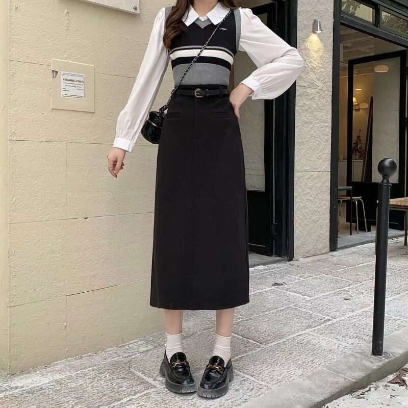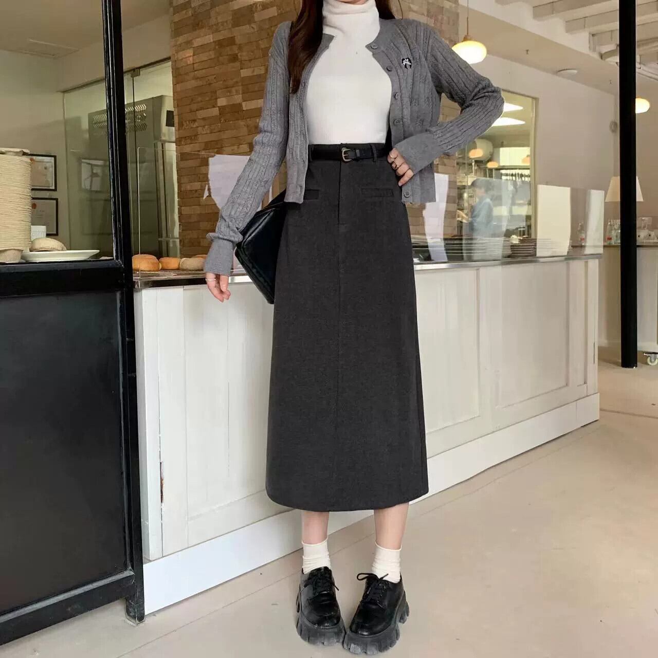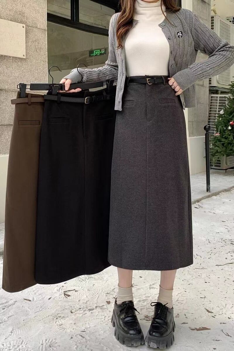 プラスサイズの婦人服ファットmm秋冬新スタイル2023ハイエンド年齢軽減スカート、脚を長く見せ、万能でスリムなAラインスカート ロング 大きめサイズ オータム 秋物 ウィンター 冬物 8884177272701297