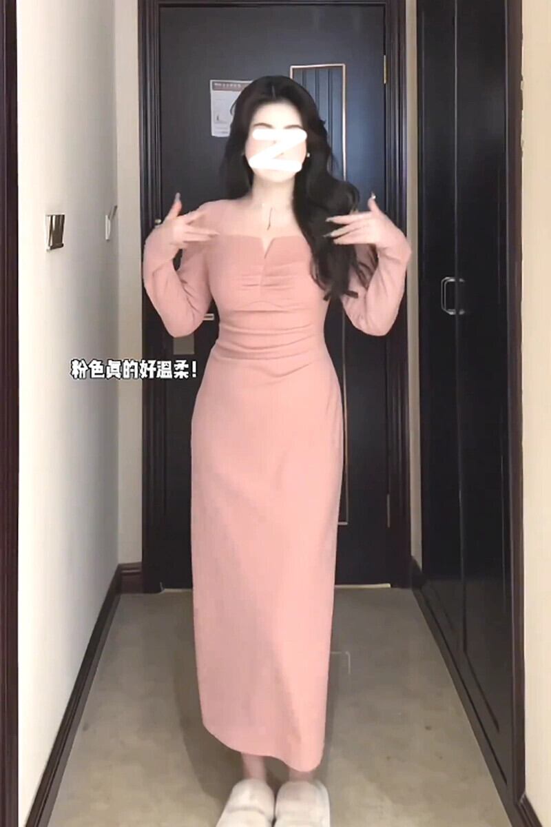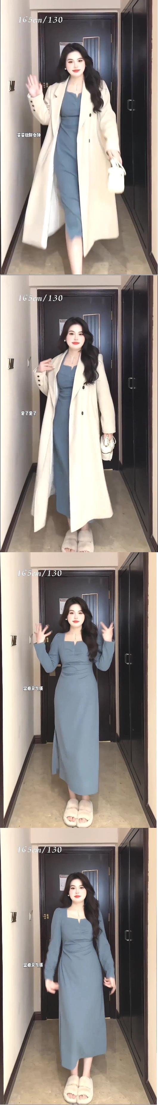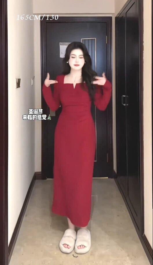 大きいサイズのハイエンド肥厚 v ネックロングスカート冬の新しい脂肪 mm 痩身プリーツウエストドレス女性 大きめサイズ ウィンター 冬物 Vネック 8884165048477119