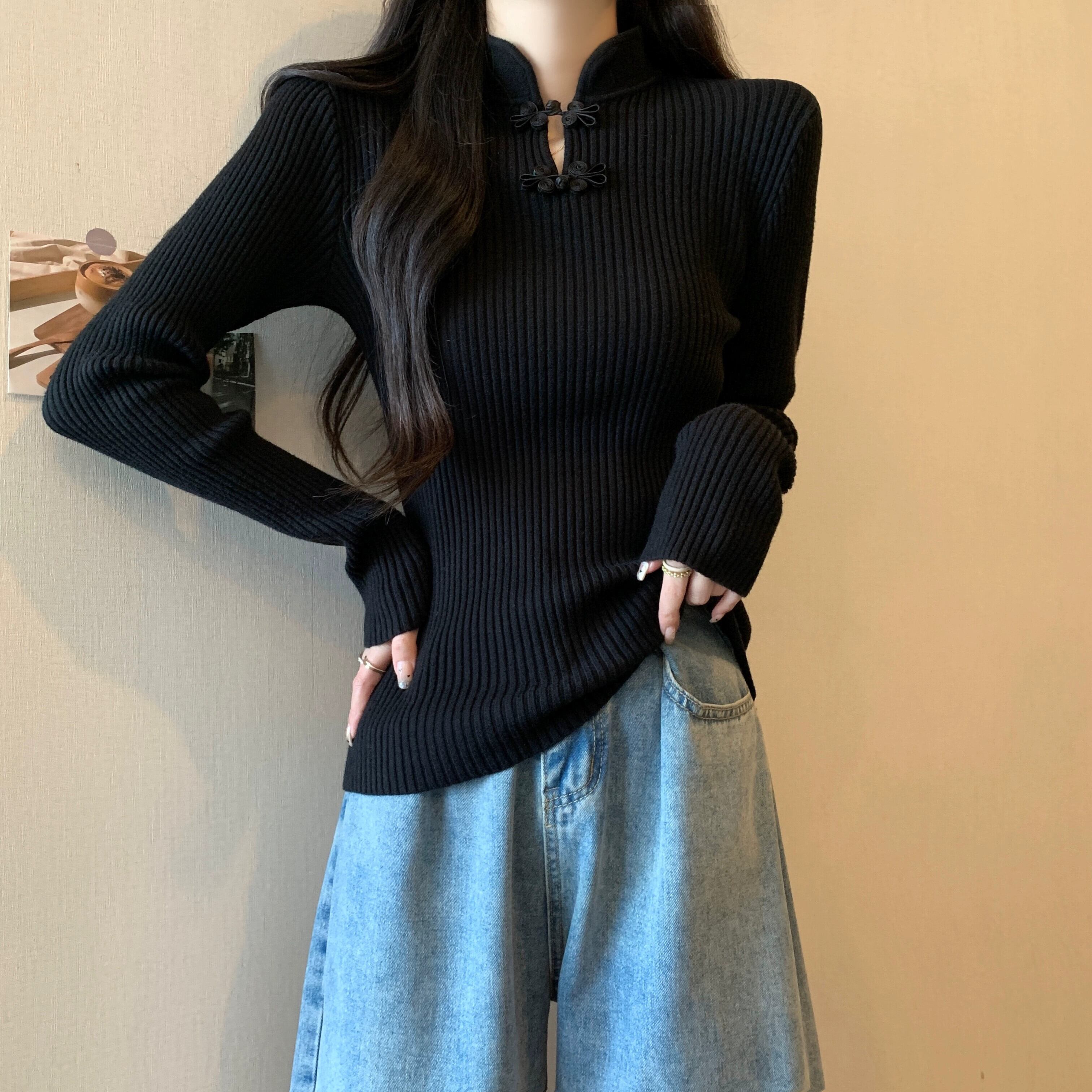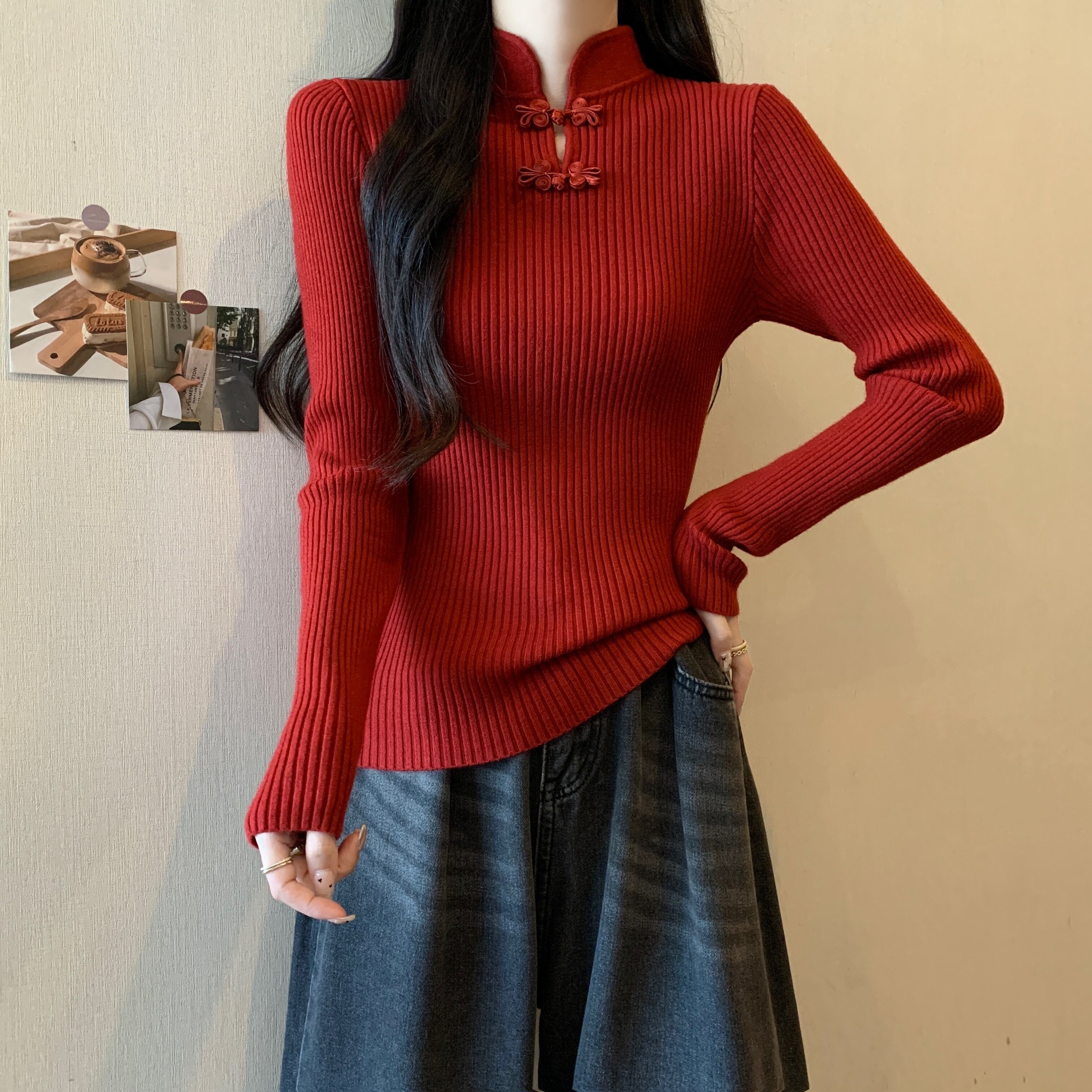 プラスサイズの女性の 2023 年の新しいファット MM セーターのデザインと気質は、シックなスタンドアップカラーの長袖スリム セーターと組み合わせています ロング レッド 大きめサイズ 8884182064607054