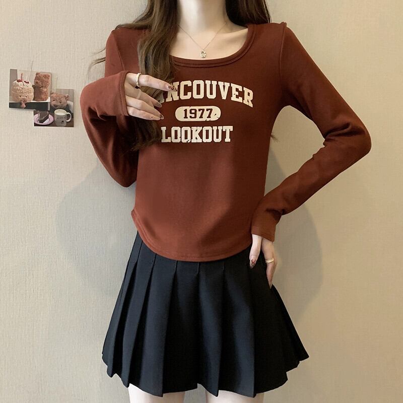 プラスサイズの婦人服ファット mm 秋の新 2023 無地ファッショナブルな気質年齢を減らすトップス多目的痩身肉カバー T シャツトレンド 大きめサイズ オータム 秋物 Tシャツ ソリッドカラー 8884132796453181