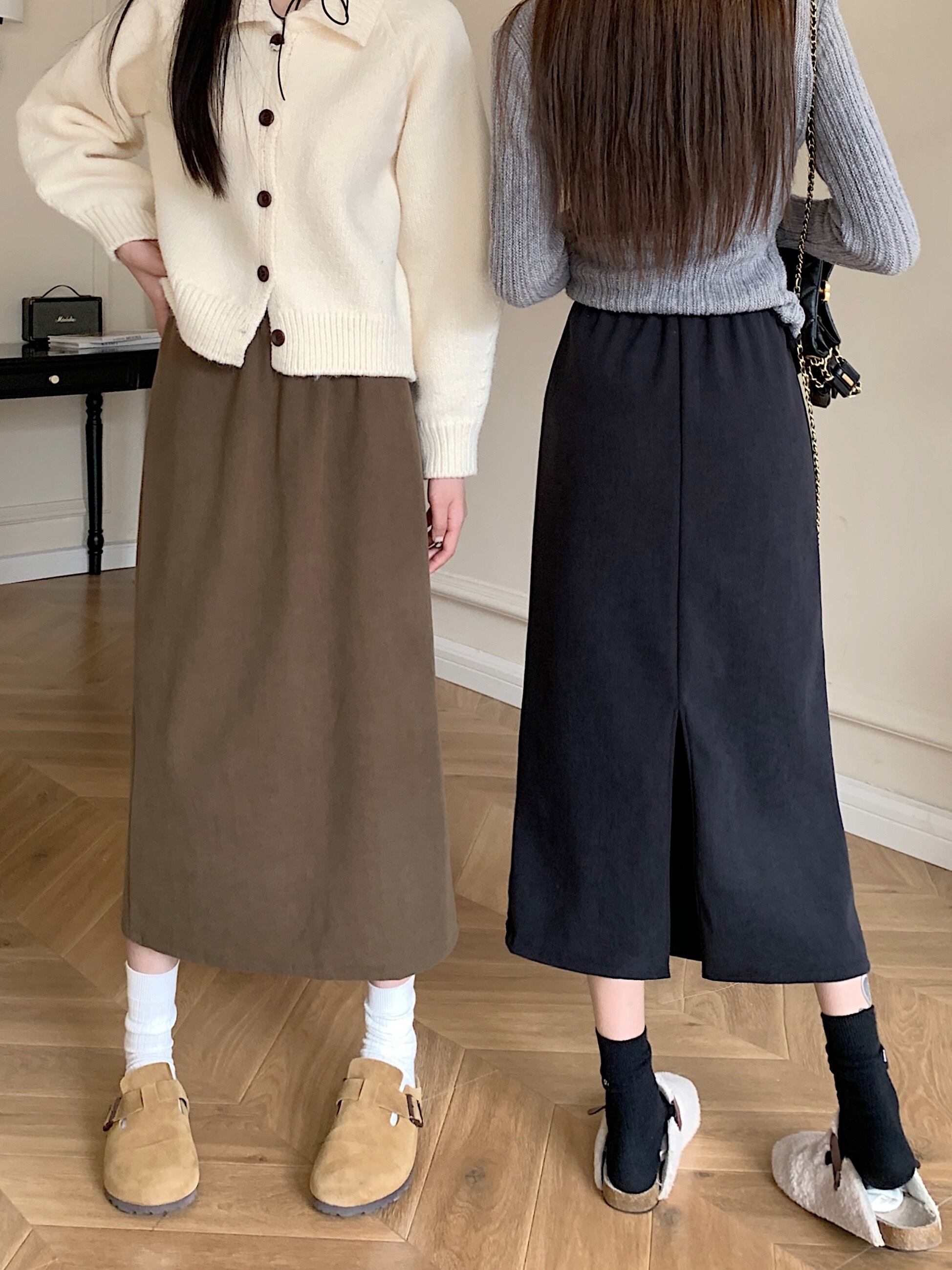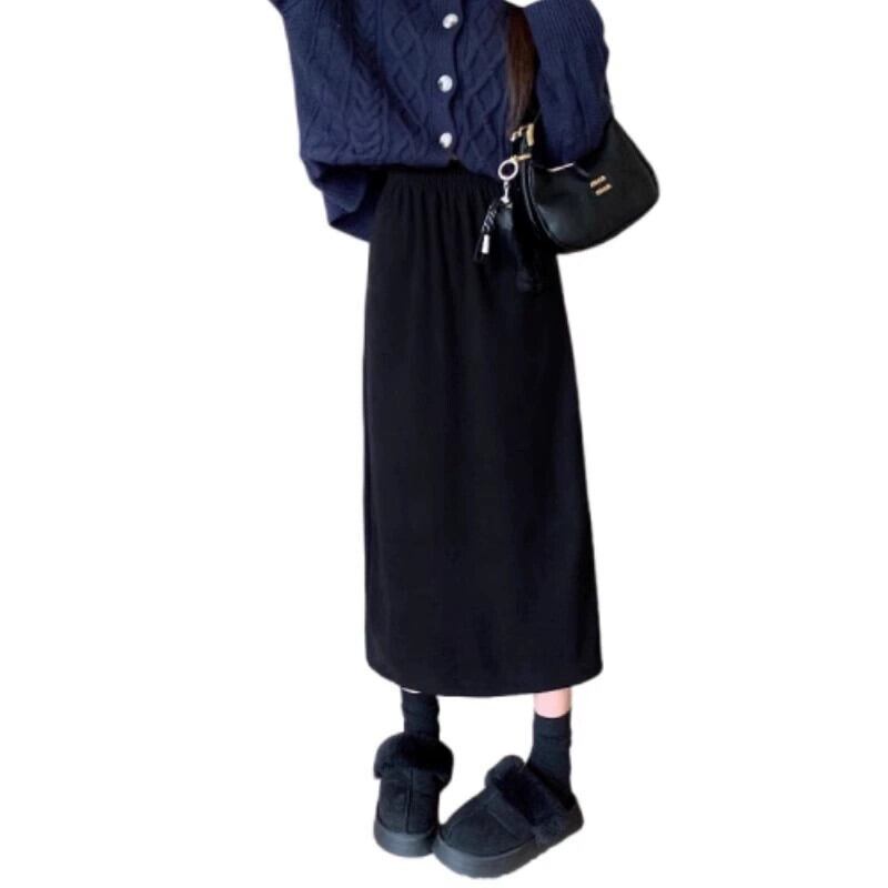 プラスサイズ秋 2023 婦人服ファット MM ソリッドカラー肥厚ベルベット多用途スリムスカートトレンディ 大きめサイズ オータム 秋物 8884160065071882