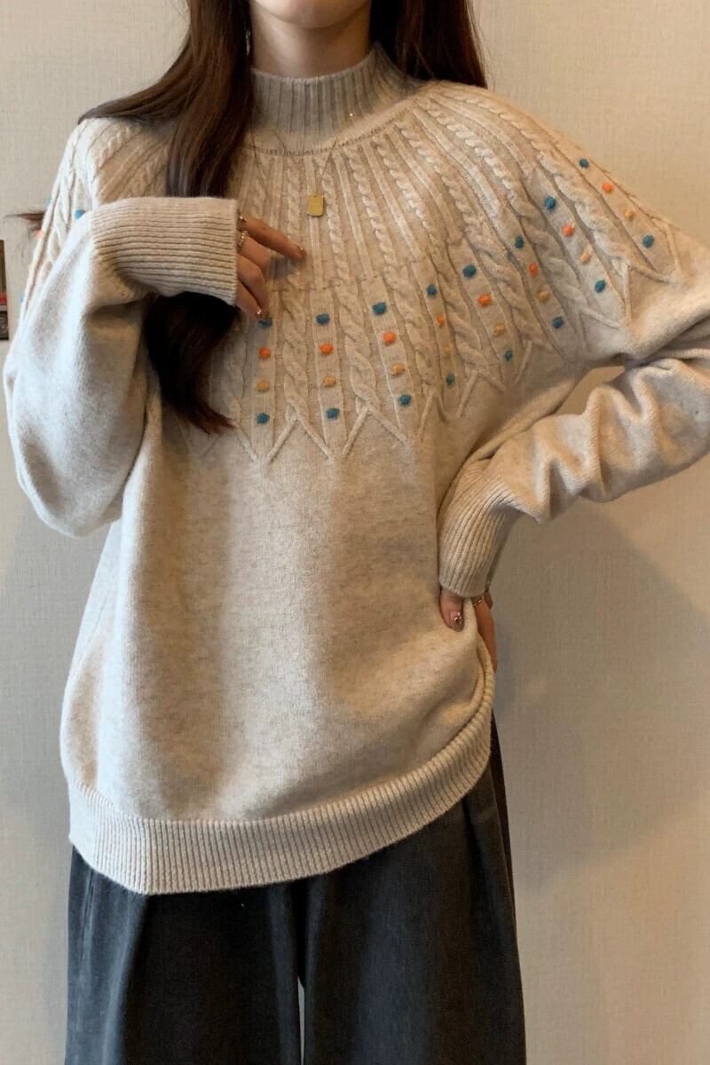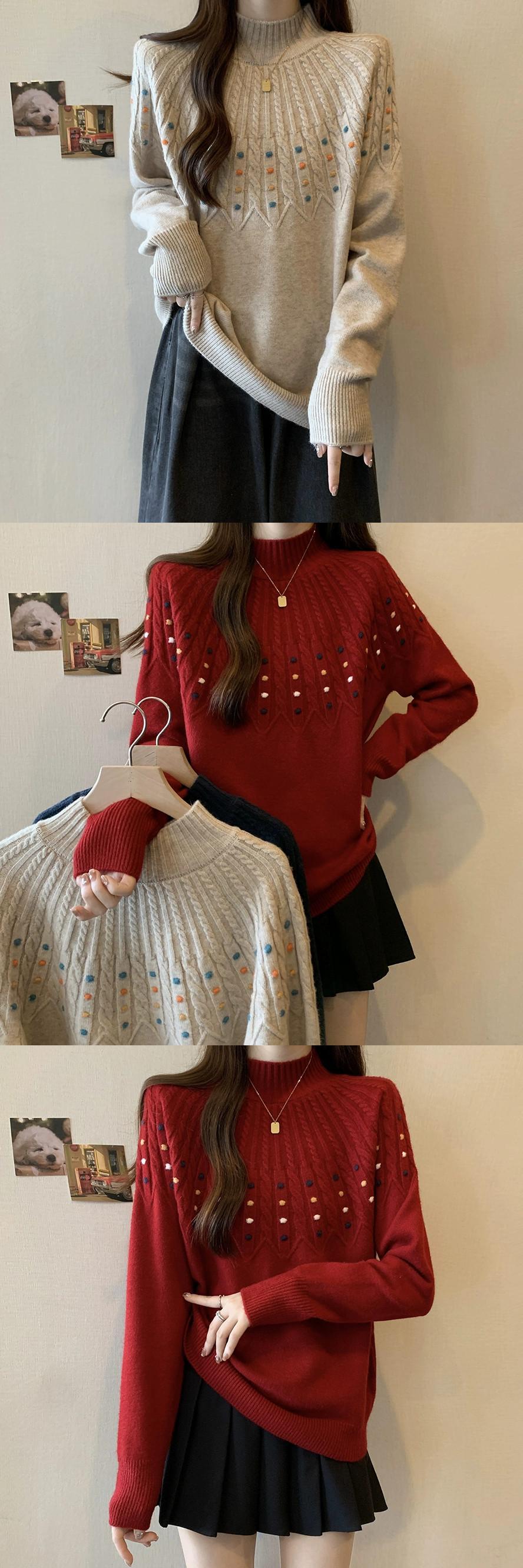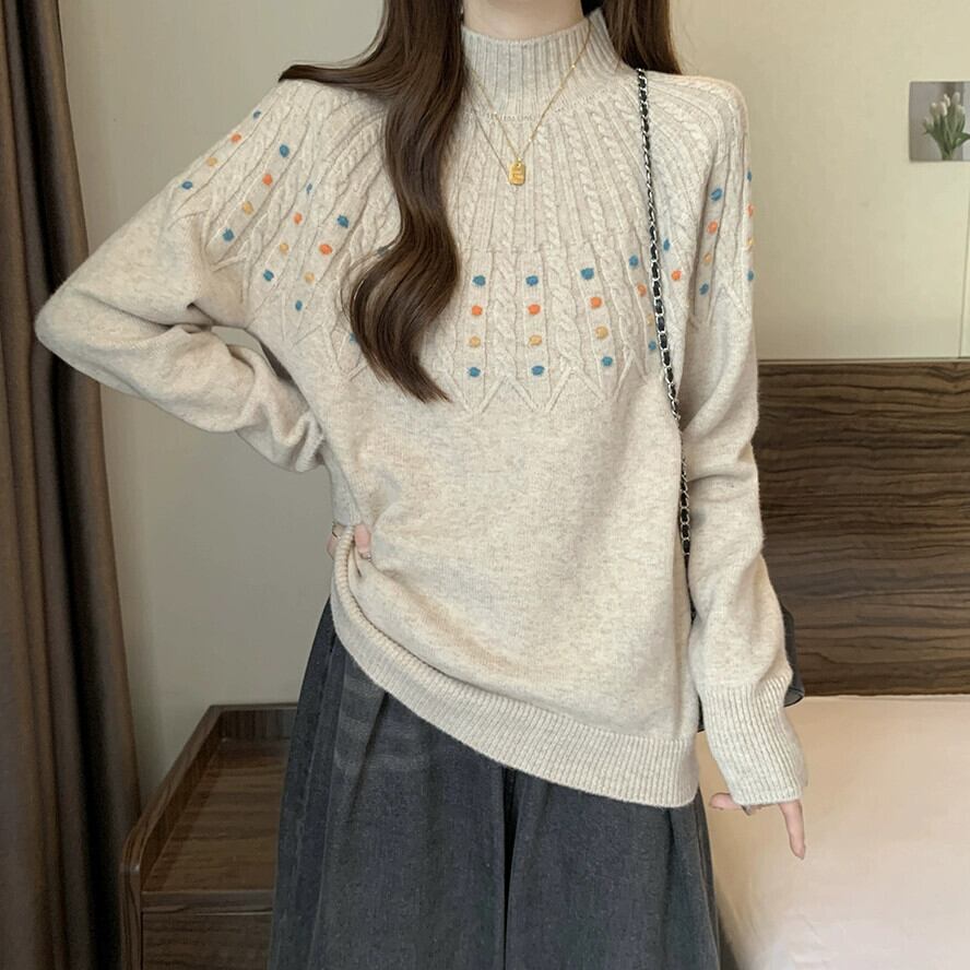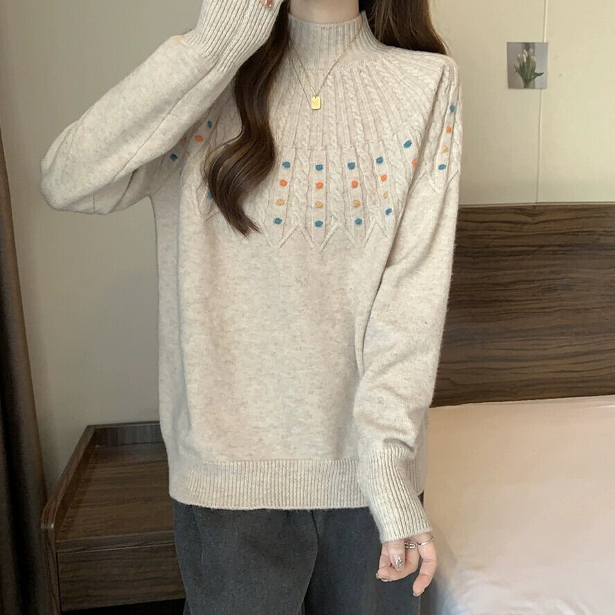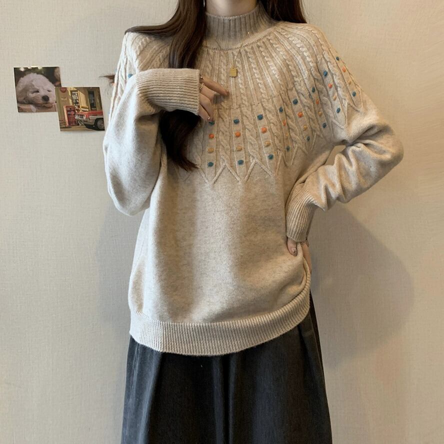 プラスサイズの女性の脂肪 mm 肥厚ハーフタートルネックセーター冬の新 2023 多用途ルーズ長袖カジュアルトップ ロング 大きめサイズ ウィンター 冬物 8884196632570791