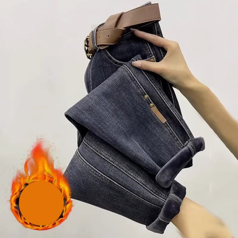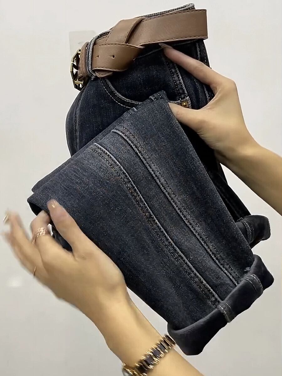 プラスサイズ秋 2023 レディースファット MM プラスベルベット太いウエストスリムストレートお父さんハーレムジーンズ 大きめサイズ オータム 秋物 8884188014908480