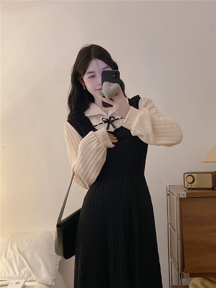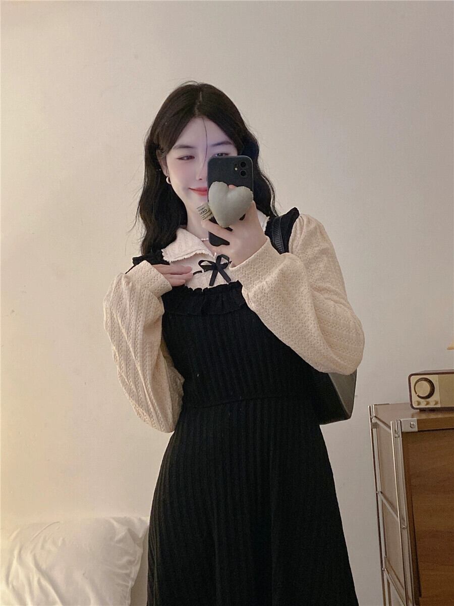 プラスサイズの婦人服ファットmm秋冬新スタイル2023デザインフレンチ年齢軽減ドレスウエスト痩身aラインスカートトレンディ 大きめサイズ オータム 秋物 ウィンター 冬物 8884157670675113