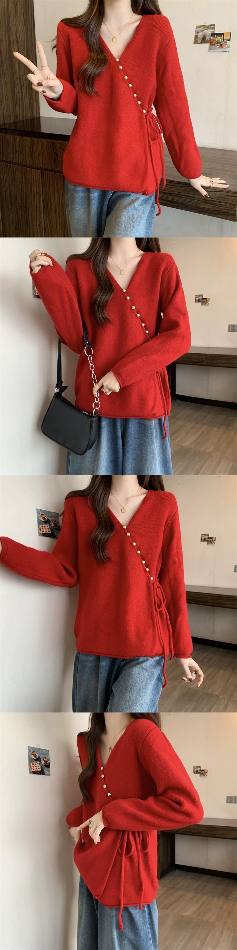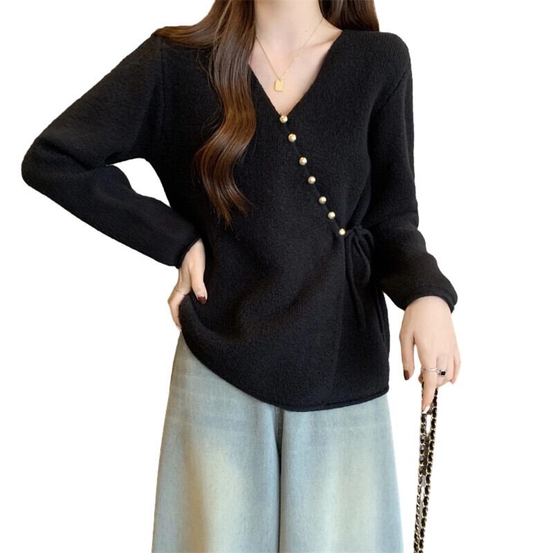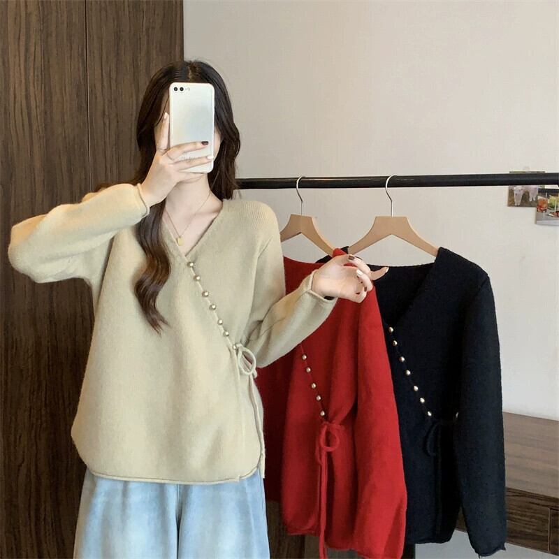 プラスサイズの婦人服ファット mm 秋と冬の新スタイル 2023 斜めボタン V ネックニットジャケットハイエンドのファッションシックなセーター女性 大きめサイズ オータム 秋物 ウィンター 冬物 Vネック 8884122453901739