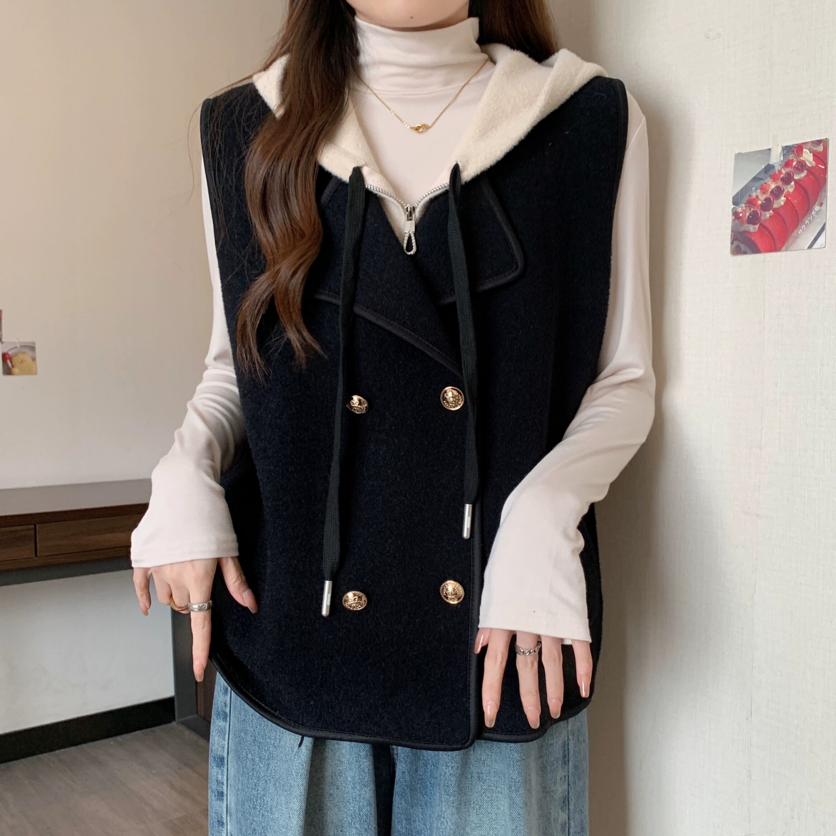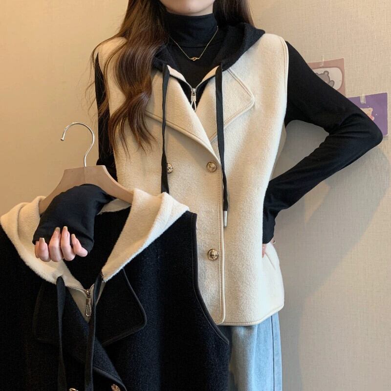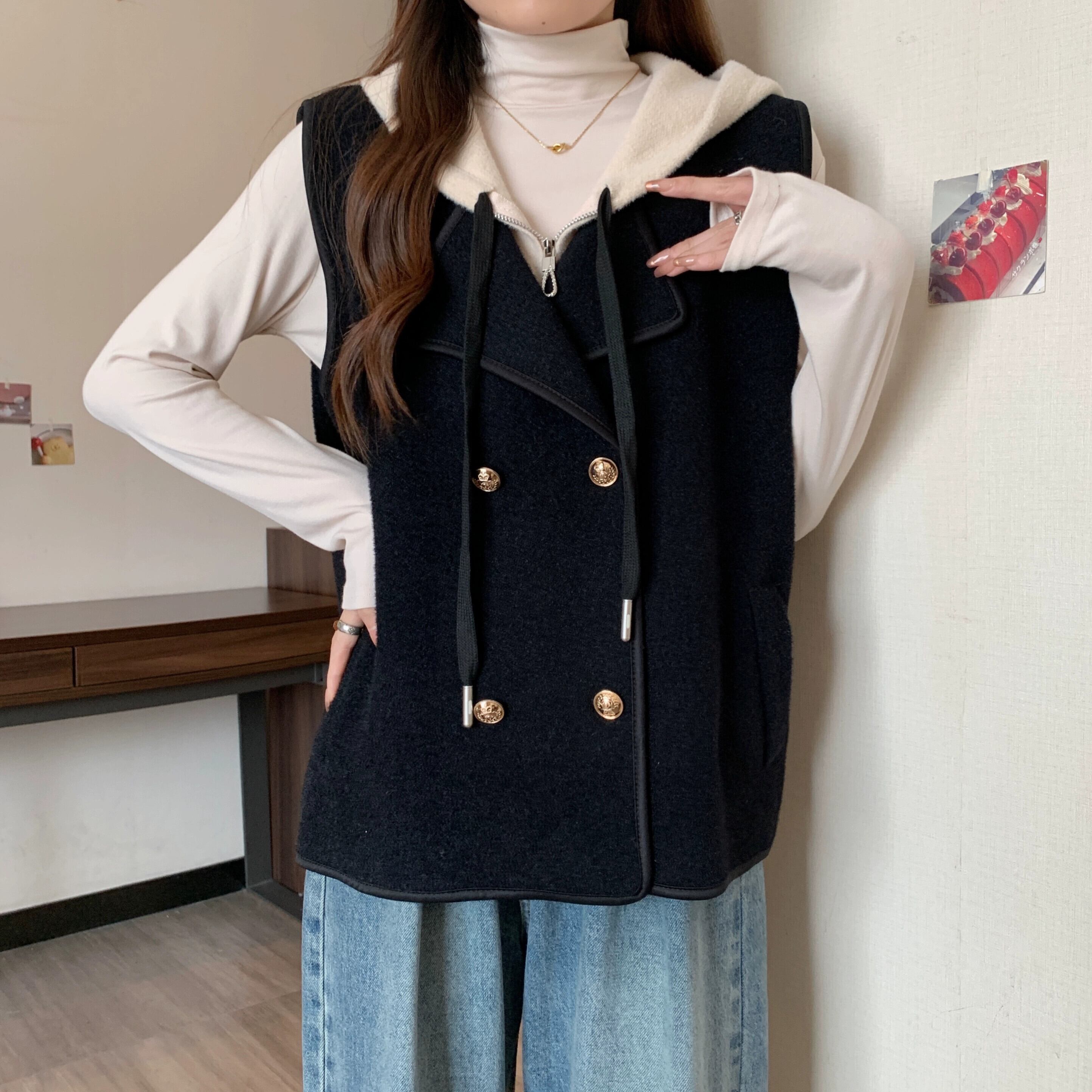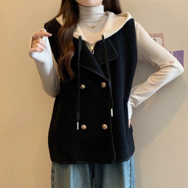 プラスサイズの婦人服ファットmm秋冬新スタイル2023ファッショナブルで年齢を軽減するトップススタイルルーズな肉をカバーするフード付きベスト 大きめサイズ オータム 秋物 ウィンター 冬物 8884148348686373