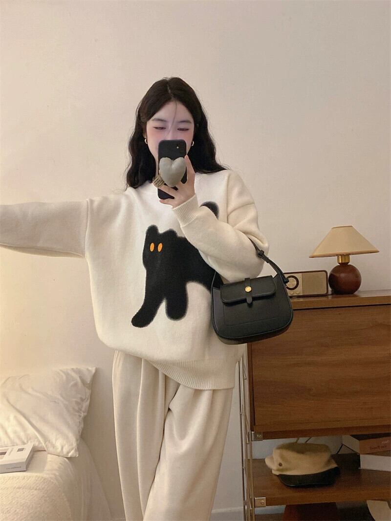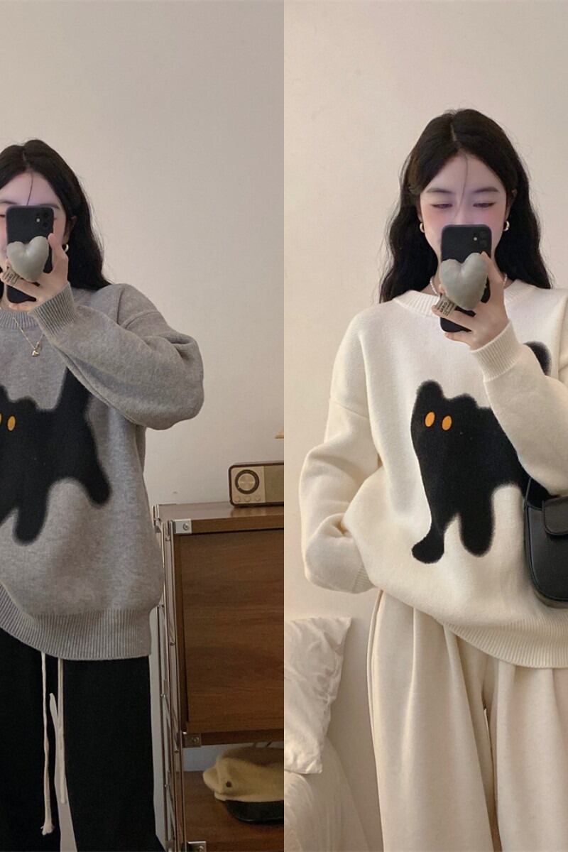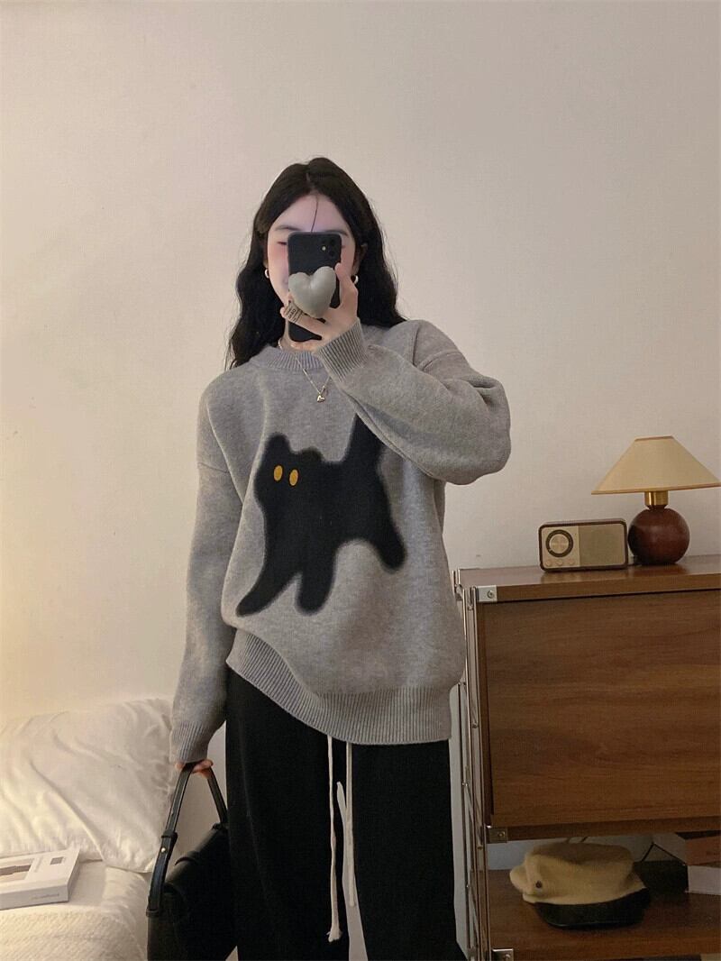 プラスサイズの女性の肥厚胸ふふ長袖セーター秋と冬の新しい脂肪ミリメートルカバー肉緩いソフトワックス怠惰なセーター ロング 大きめサイズ オータム 秋物 ウィンター 冬物 8884110404353163