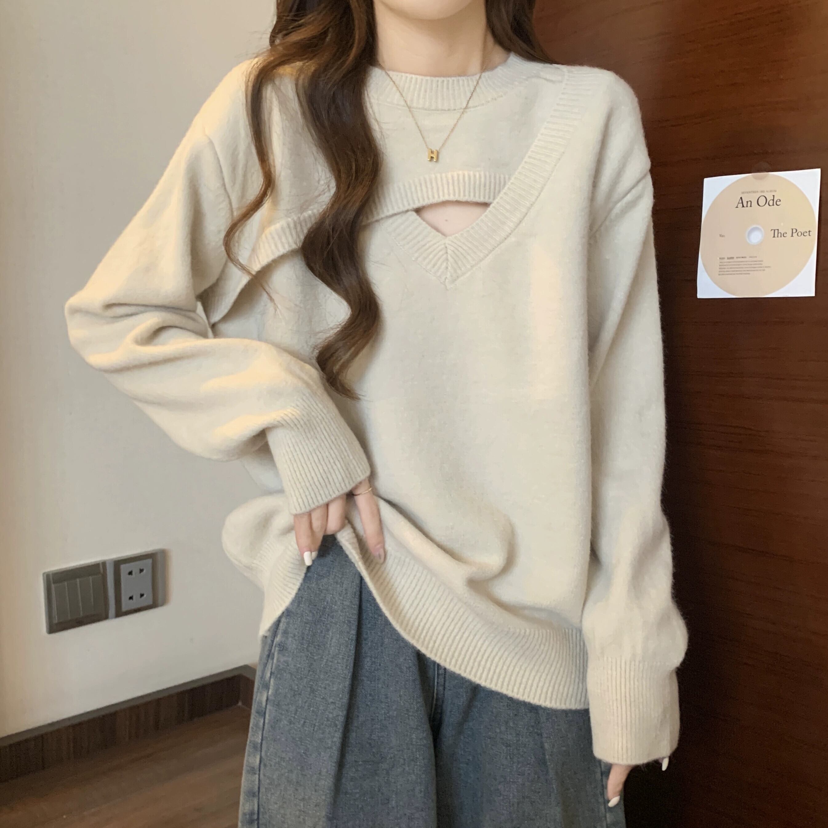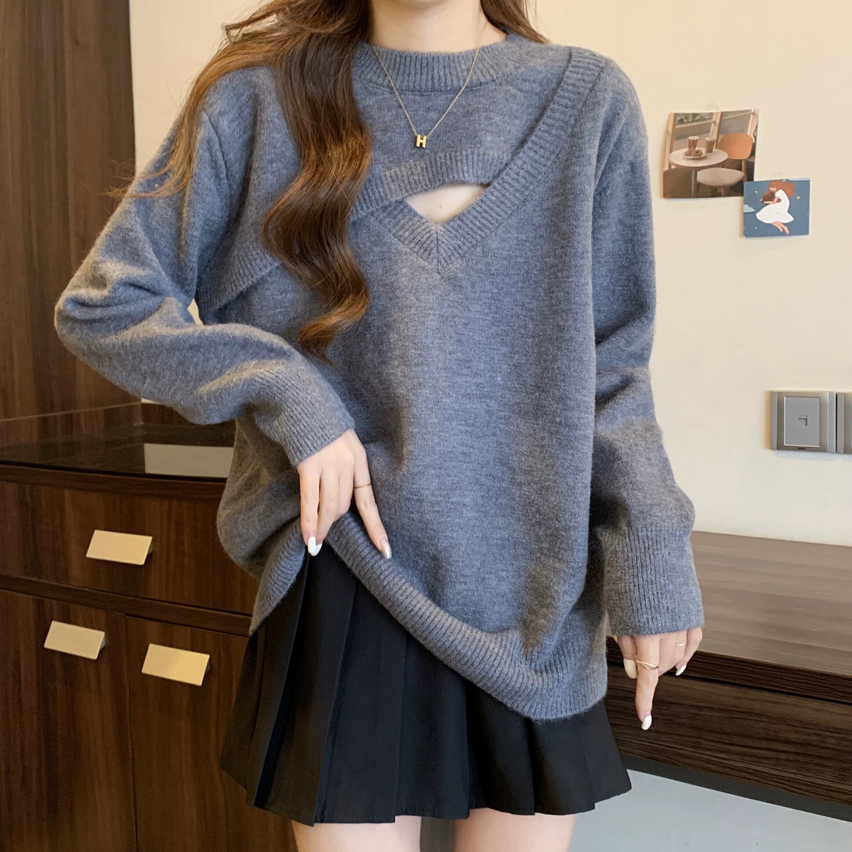 プラスサイズの女性の脂肪 mm 慎重な中空トップ冬の新 2023 怠惰なスタイルのインナーウェア腹をカバーするセーター 大きめサイズ ウィンター 冬物 8884112080334997