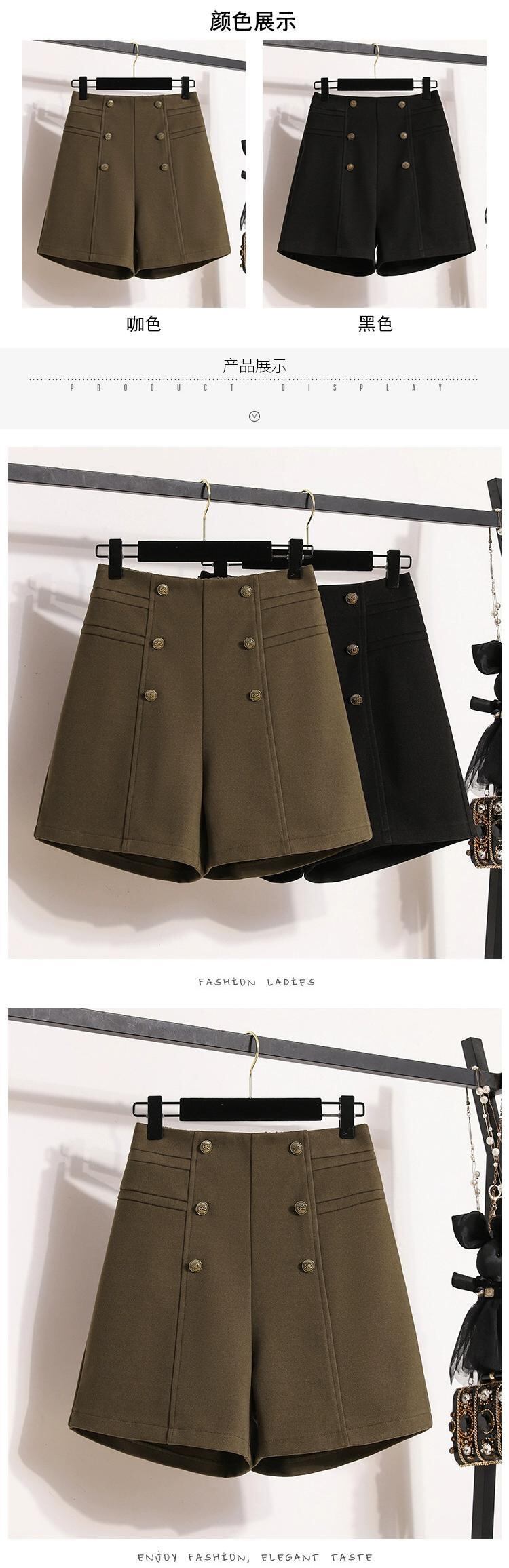 プラスサイズの秋の新しいアウターウェアウールカジュアルショートパンツ女性、太いmm、スリムな気質、ハイウエスト、Aライン、ワイドレッグブーツパンツ、トレンディ ハイウェスト 大きめサイズ オータム 秋物 ショーツ ブルマー 8884143231696166