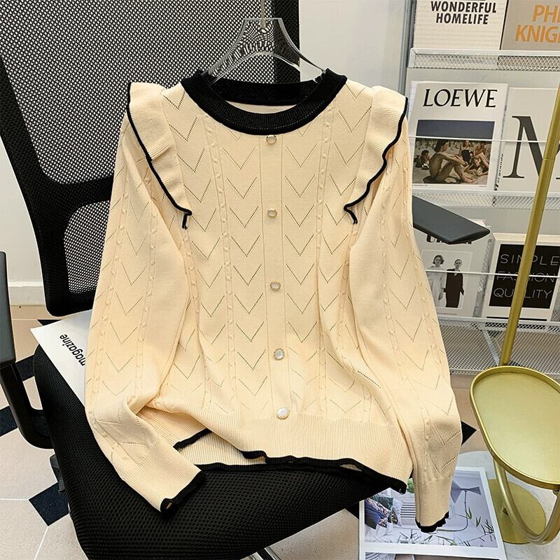 プラスサイズの女性の 2023 ファットシスター秋スリム多用途コントラストカラーラウンドネックセーター長袖トップ ロング 大きめサイズ オータム 秋物 Oネック 8884175119489315