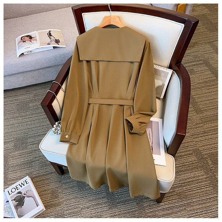 プラスサイズの女性の秋と冬の脂肪 mm 気質ウエストドレス 2023 新しいスリムネイビーカラー A ラインミドル丈スカート 大きめサイズ オータム 秋物 ウィンター 冬物 Aライン 8884179384312337