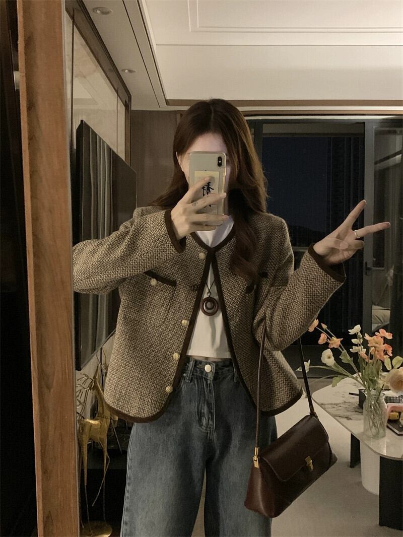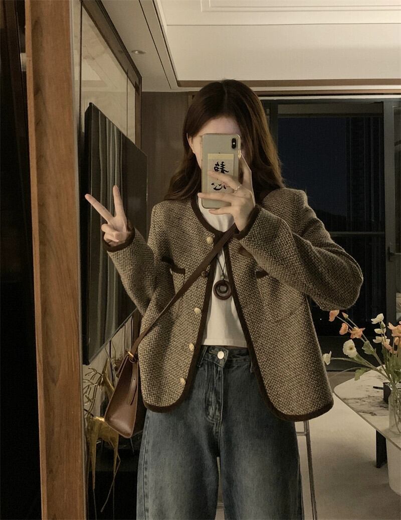 プラスサイズの婦人服 2023 トレンディな秋の新しいファットカーディガンニッチ多用途老化トップレトロフレンチショートコート 大きめサイズ オータム 秋物 8884159609847628