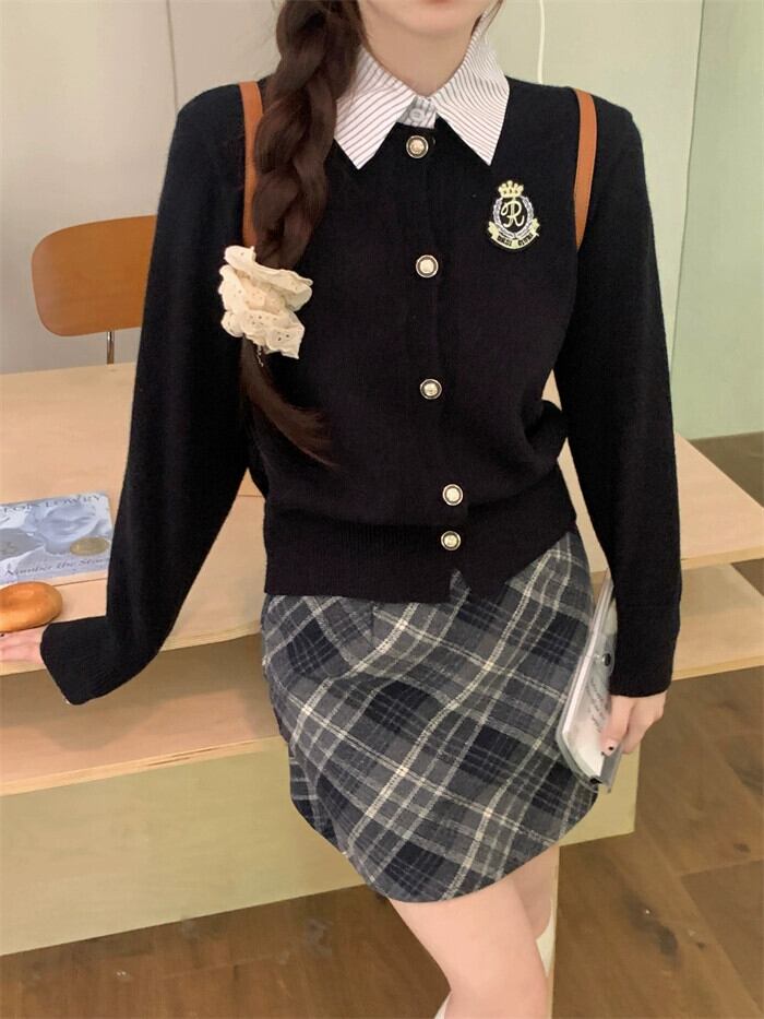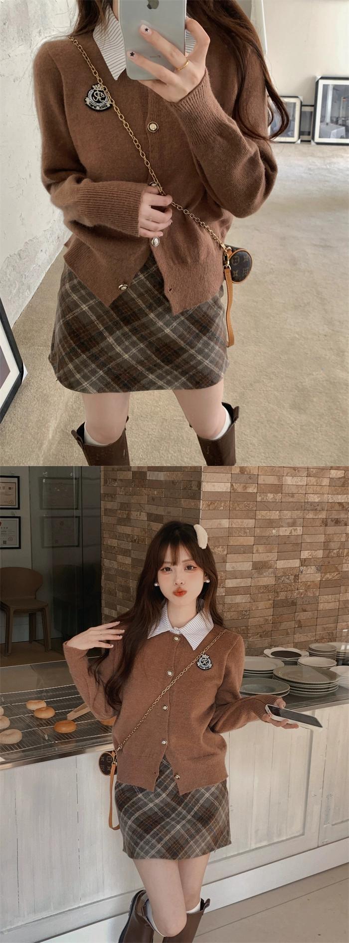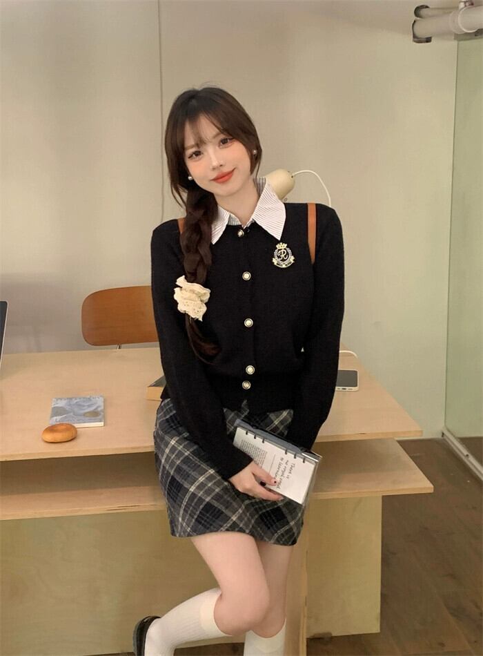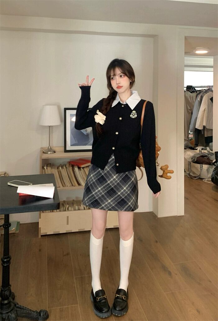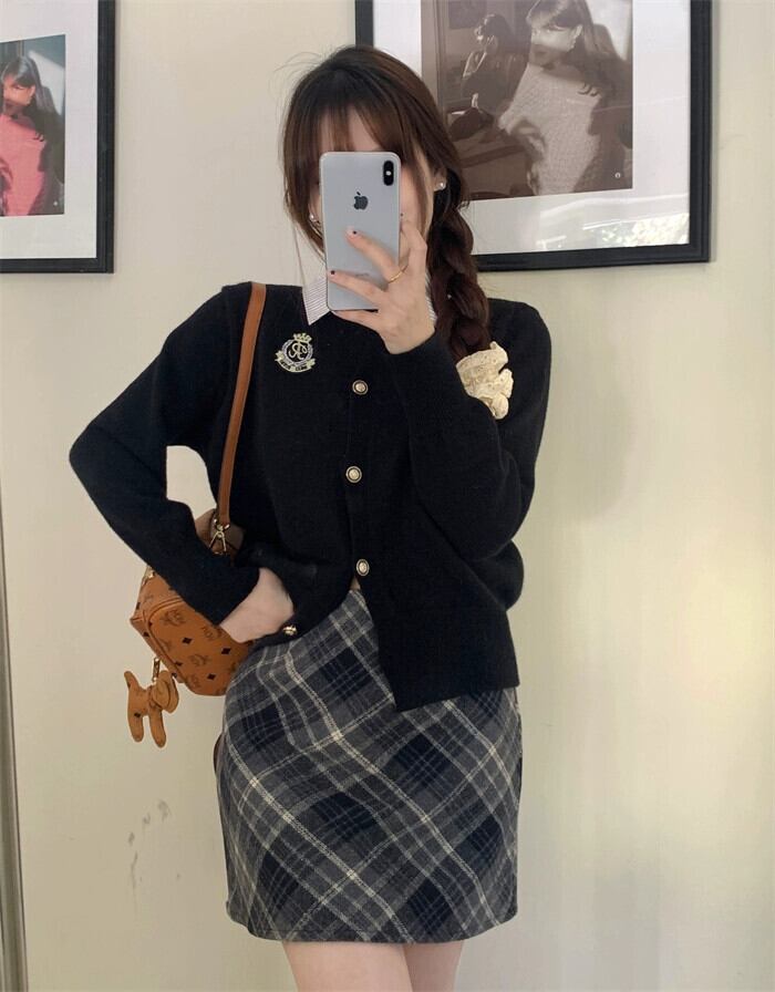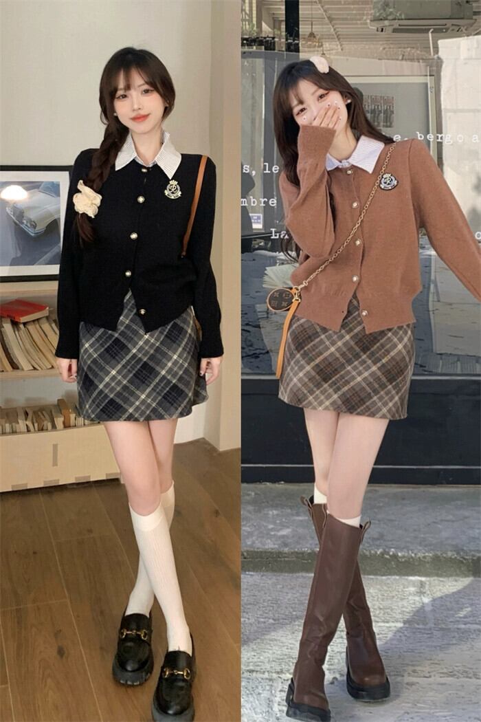 色:黒いセーター,コーヒー色のセーター,ハイグスカート,ケージスカート