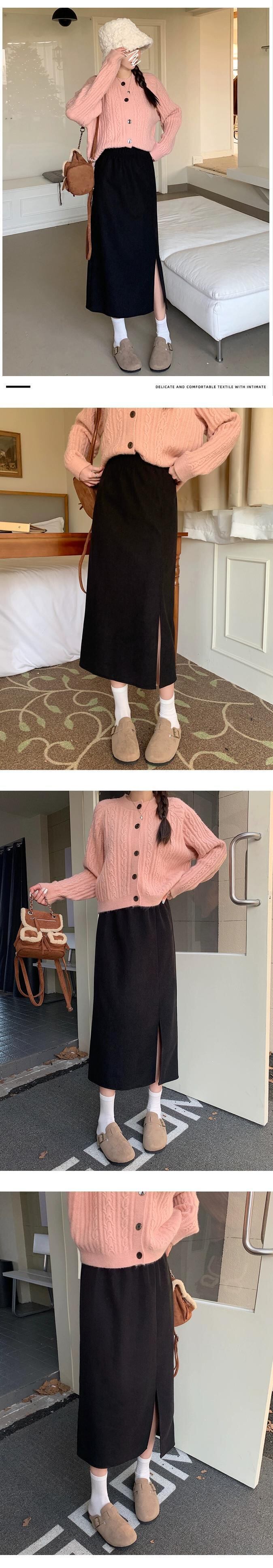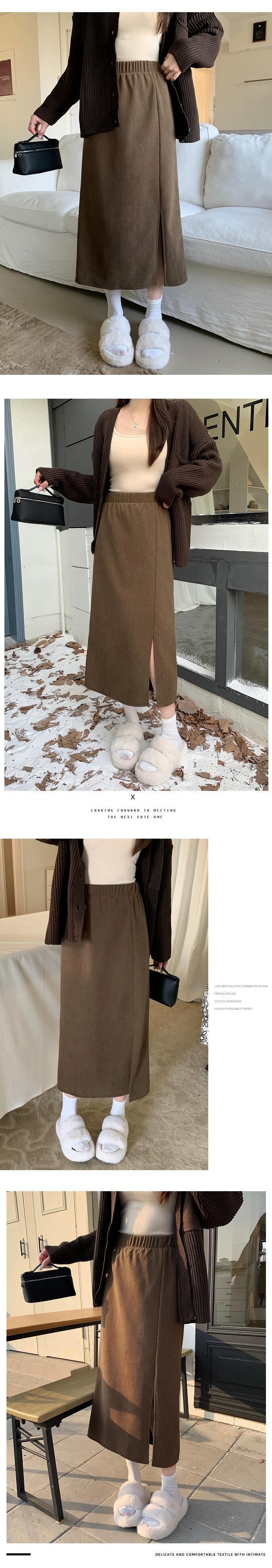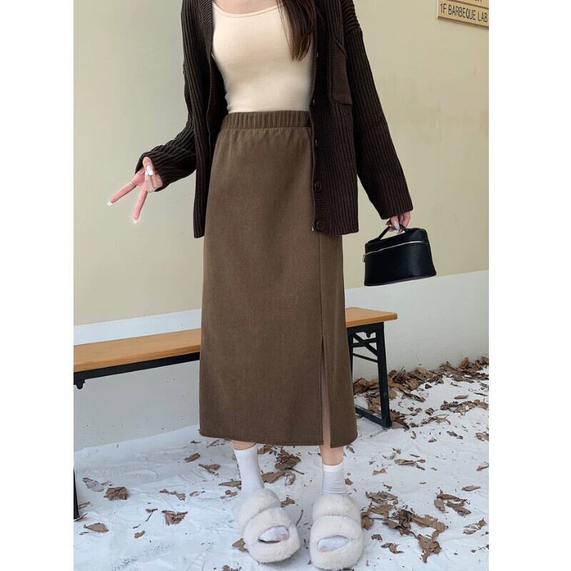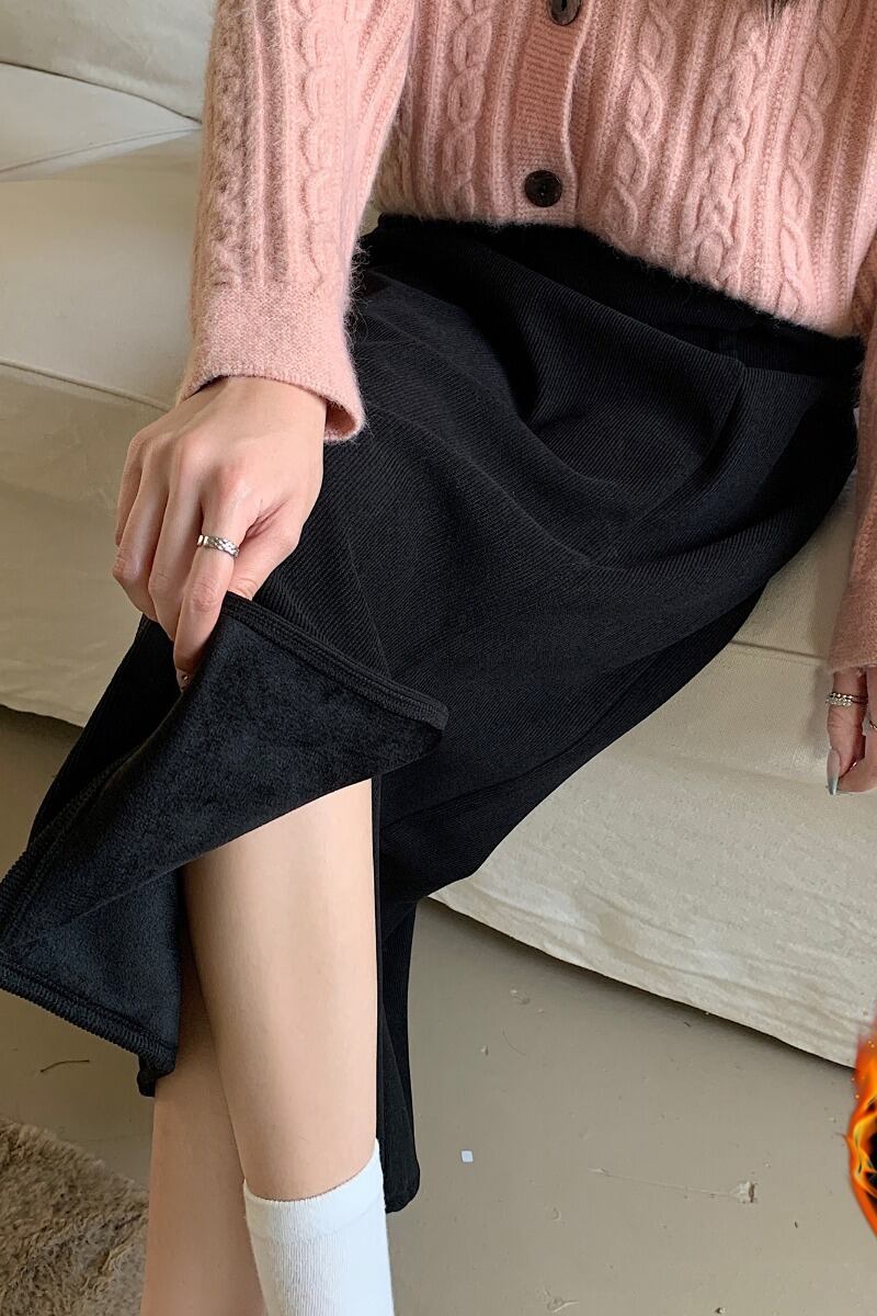 2023 冬の新スタイルプラスベルベット大きいサイズスリットスカート女性弾性ウエストバッグ尻脂肪 MM ミッドレングス A ラインスカート エラスティック 伸縮 大きめサイズ ウィンター 冬物 Aライン 8884112980020489