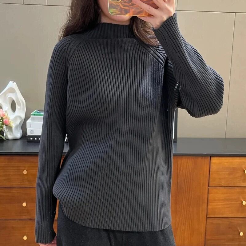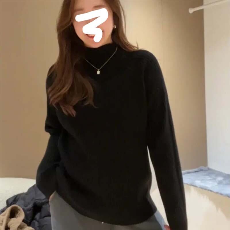 大きいサイズ怠惰なハーフタートルネックニットセーターレディース秋冬新スタイル少しぽっちゃりmmゆったり肉カバースリムインナートップトレンド 大きめサイズ オータム 秋物 ウィンター 冬物 8884161421259216