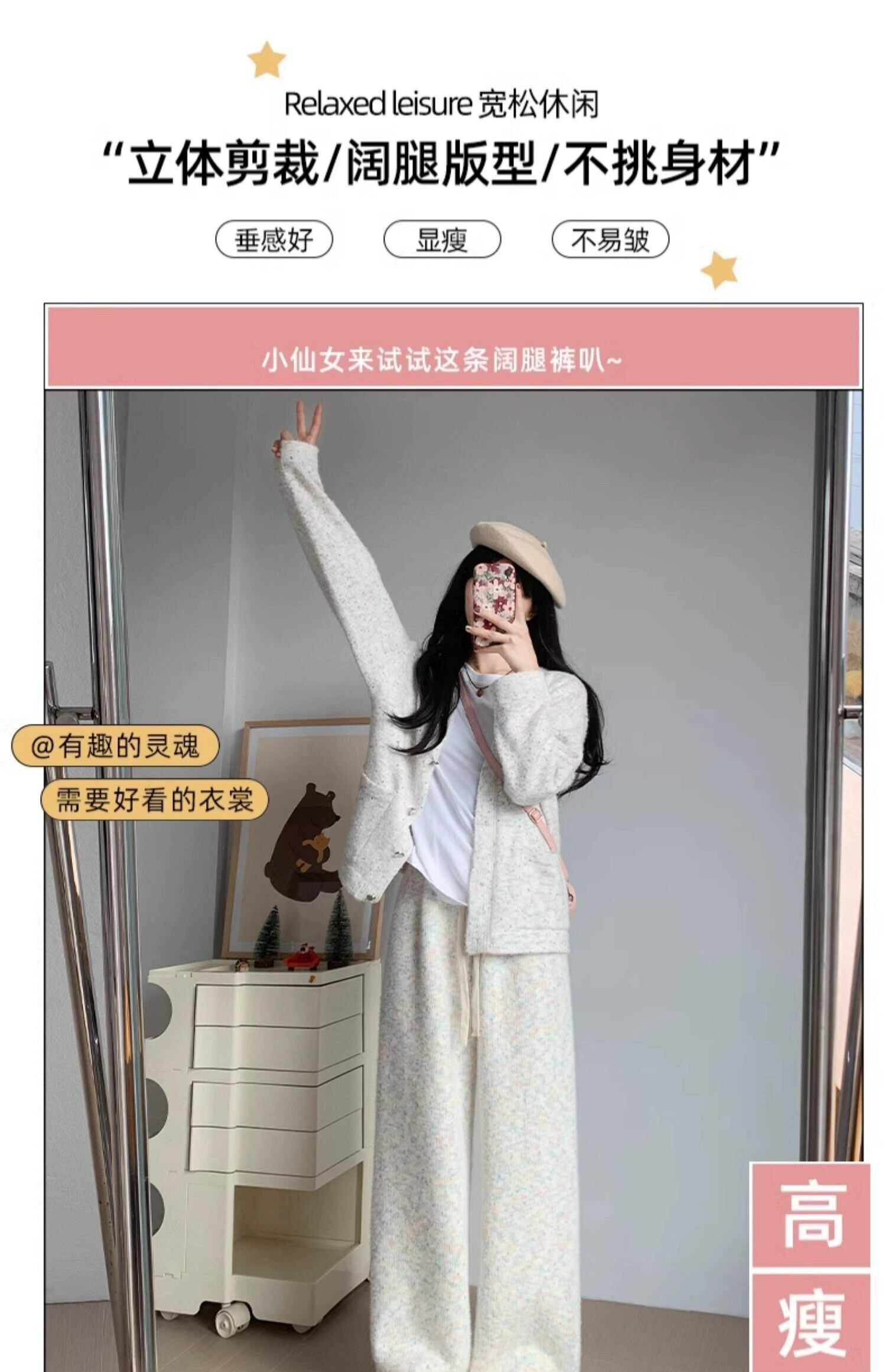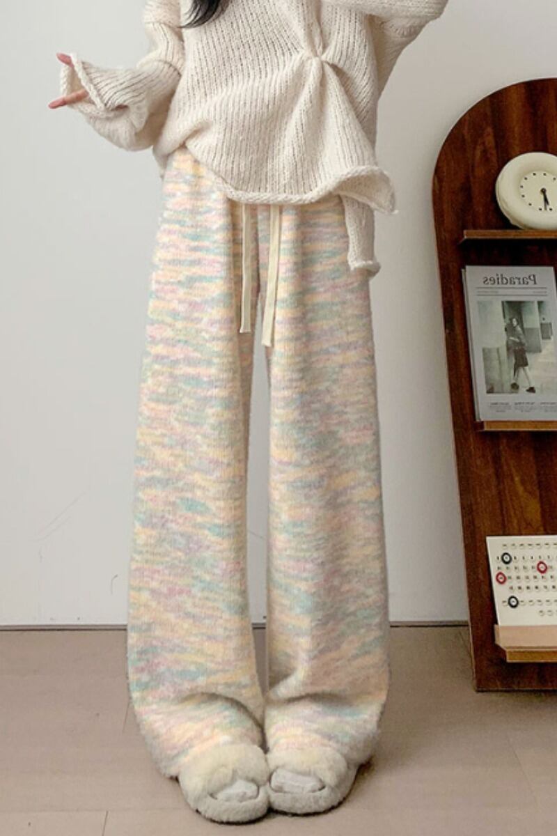 オフホワイトのもち米パンツの女性の秋冬 2023 新しいハイウエストソフトもち米ワイドレッグパンツカジュアルニットプラスベルベットパンツ オータム 秋物 ウィンター 冬物 8884187844491732