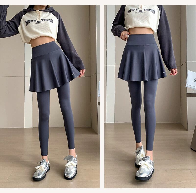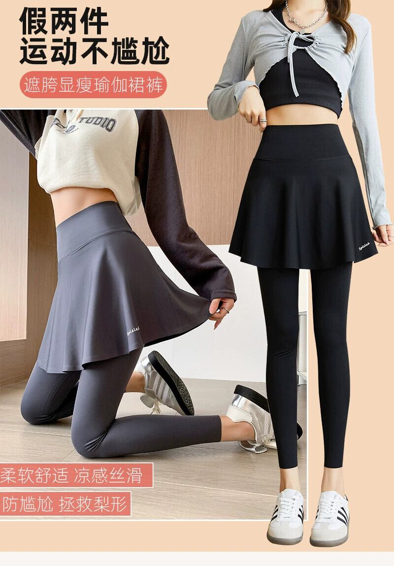 プラスサイズの婦人服 2023 ファットシスター秋の新偽ツーピース A ラインスカート底サメパンツワンピーススカートパンツヨガパンツ 大きめサイズ オータム 秋物 Aライン 8884147877411893