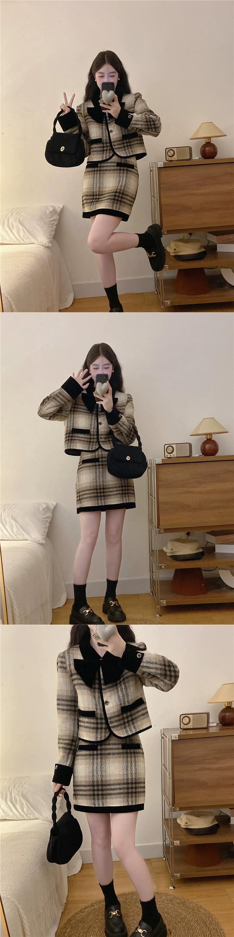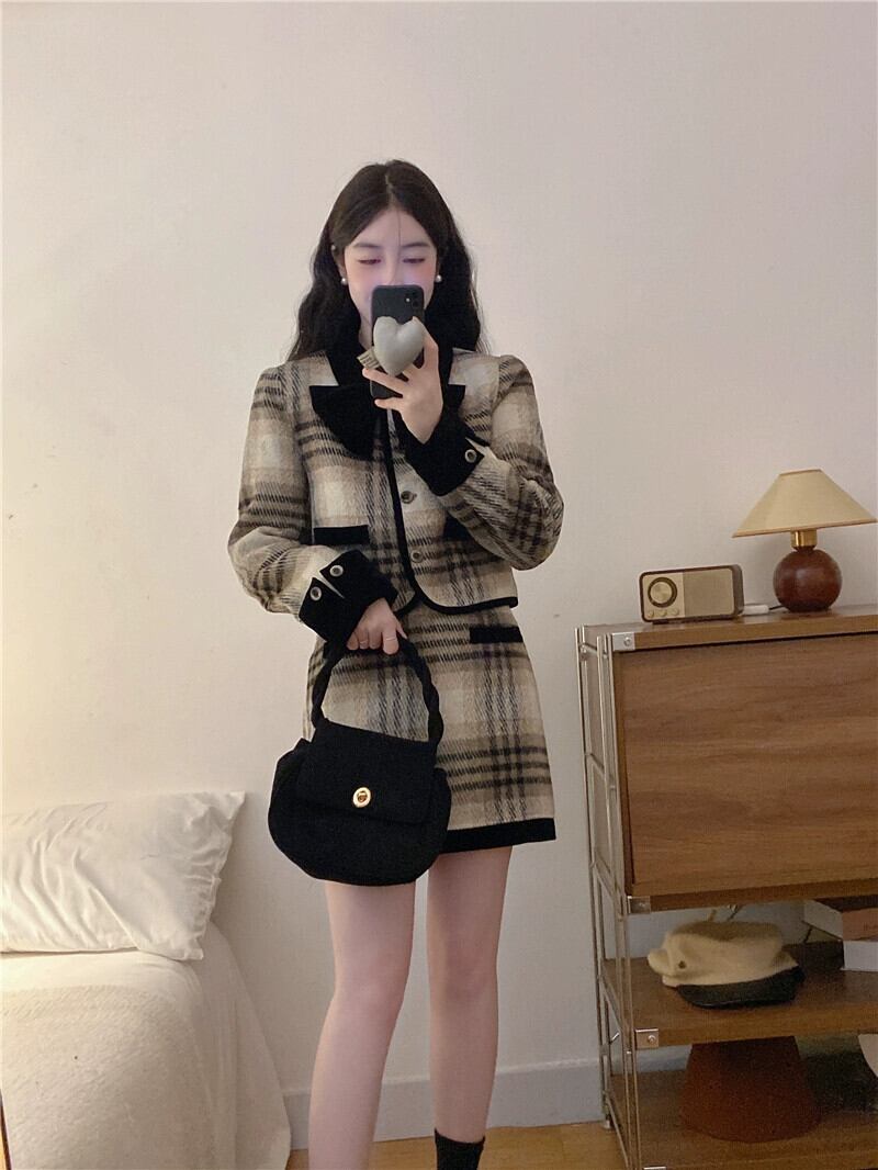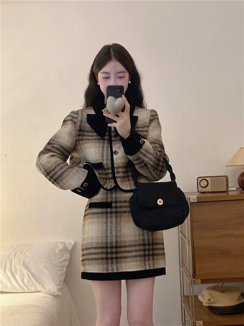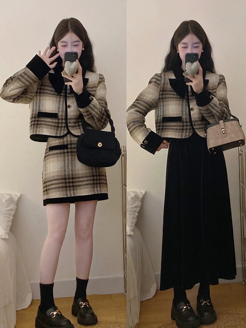 色:シングルチェック柄ジャケット,シングルチェック柄スカート,シングルブラックドレス
