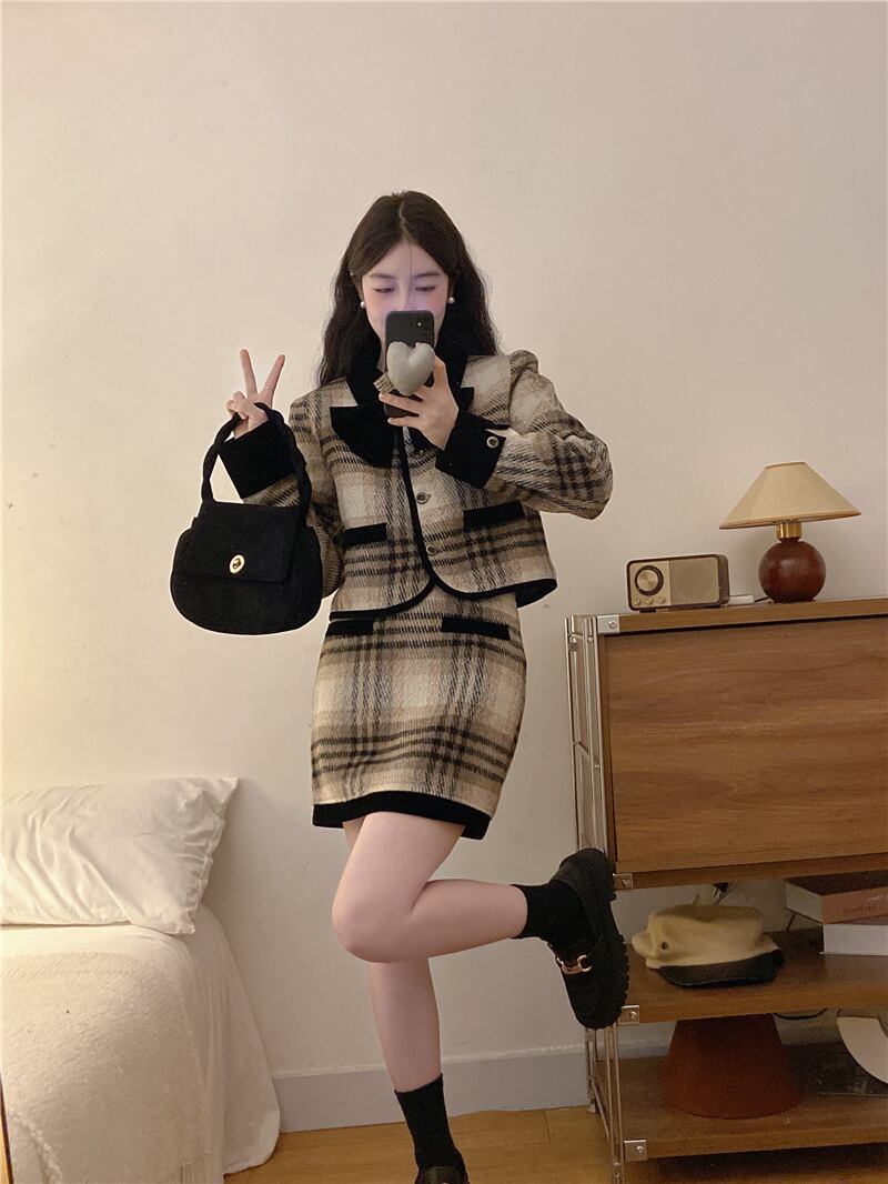 プラスサイズの婦人服 2023 流行の秋の新しい脂肪ハイエンド西洋スタイルのスーツ年齢を軽減するコートとスカートの 2 点セット 大きめサイズ オータム 秋物 8884118610650678