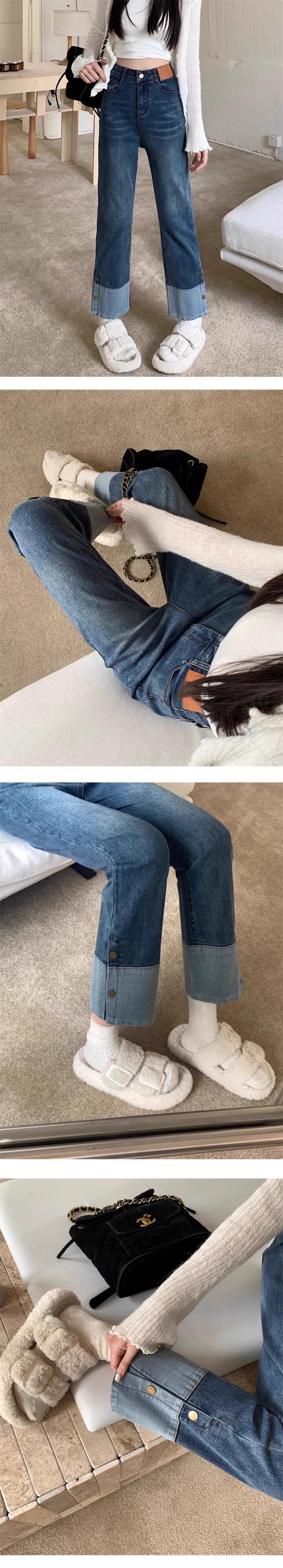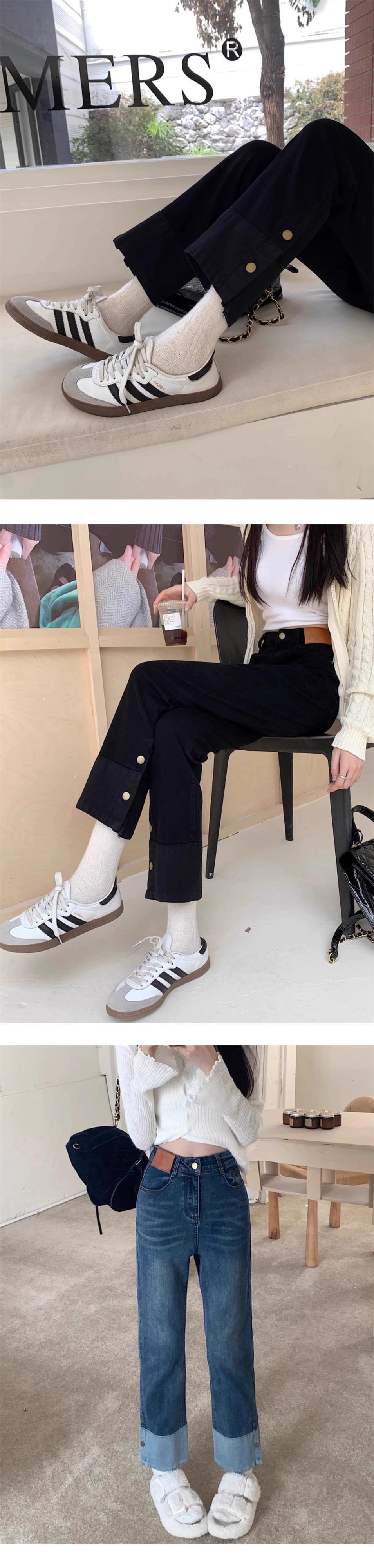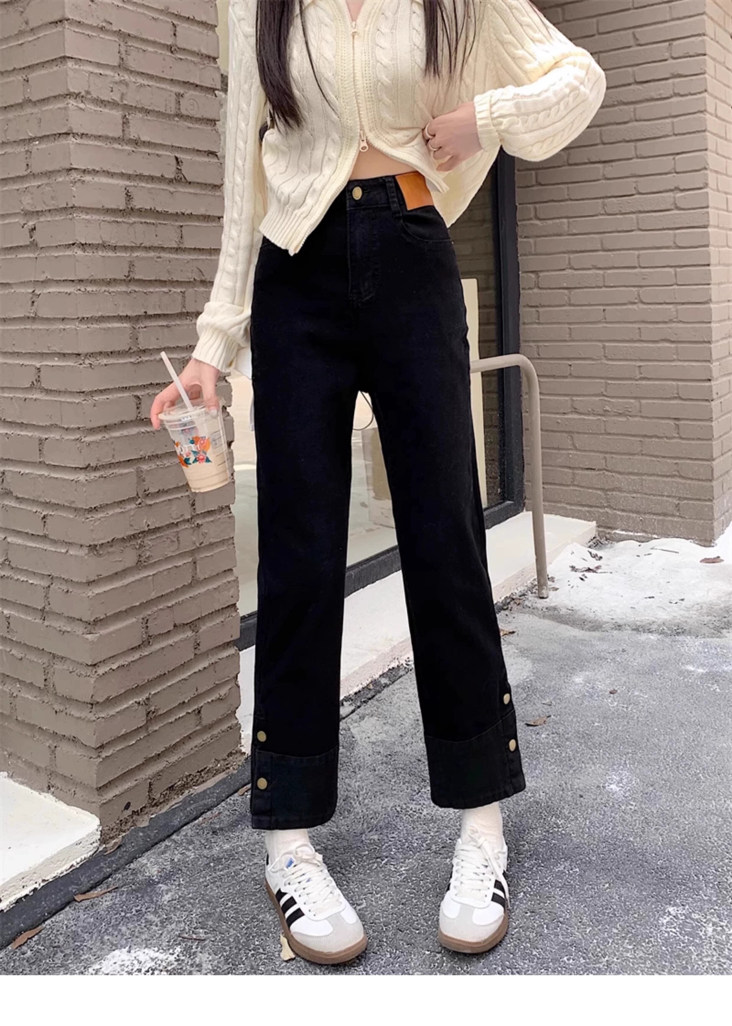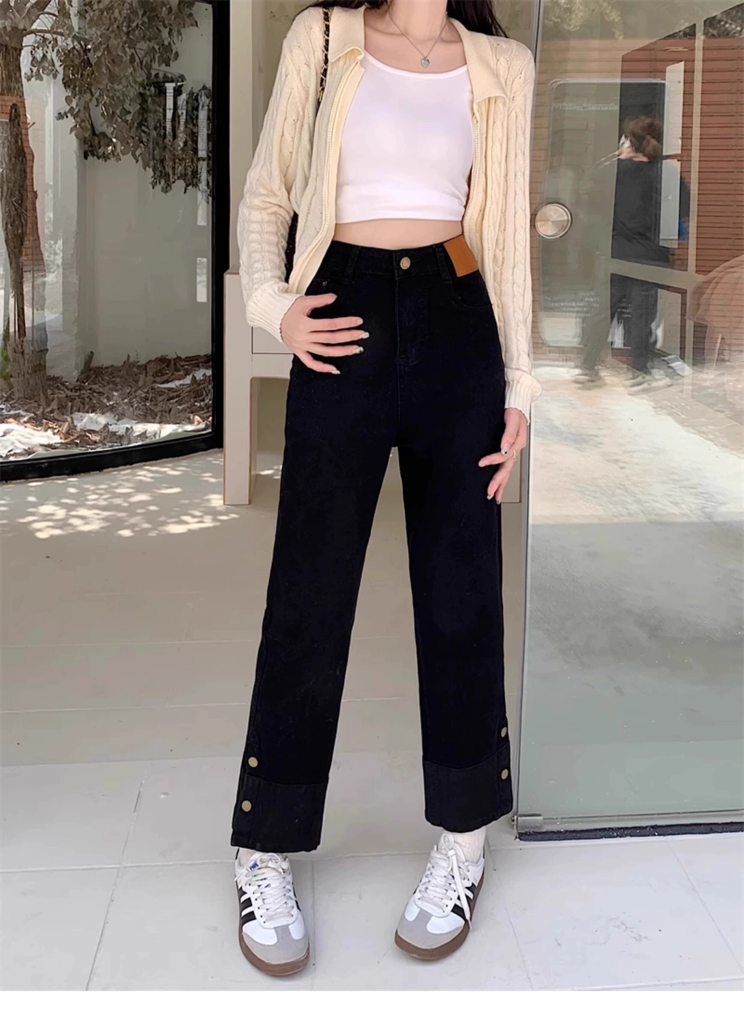 秋と冬のプラスサイズの女性の脂肪 mm ストレート ジーンズ スタイル洋ナシ型ボディスリム痩身 9 ポイント シガレット パンツ 大きめサイズ オータム 秋物 ウィンター 冬物 8884155161665221