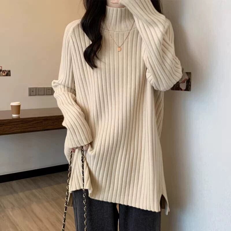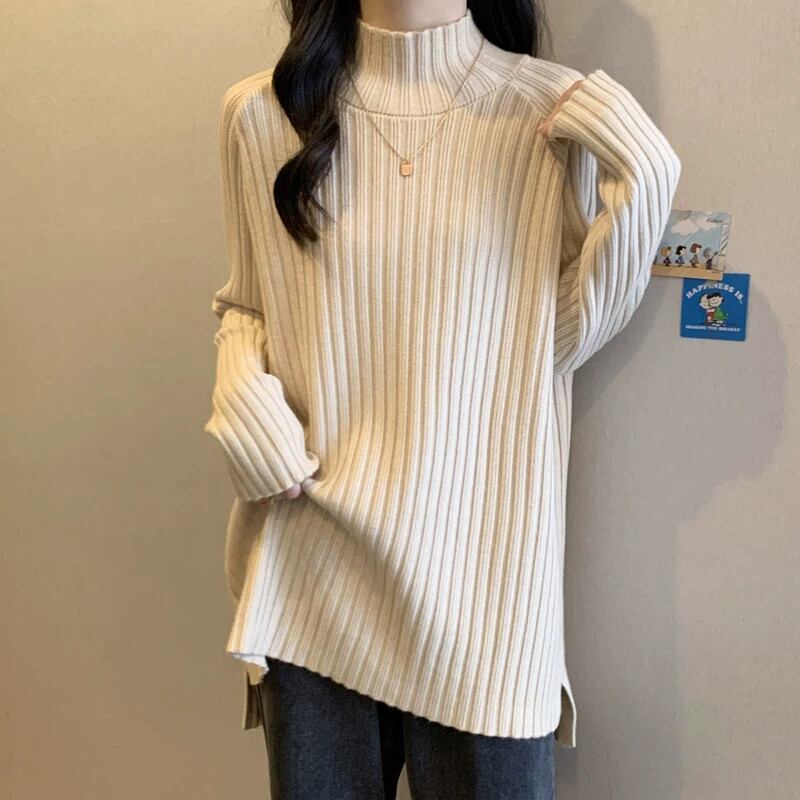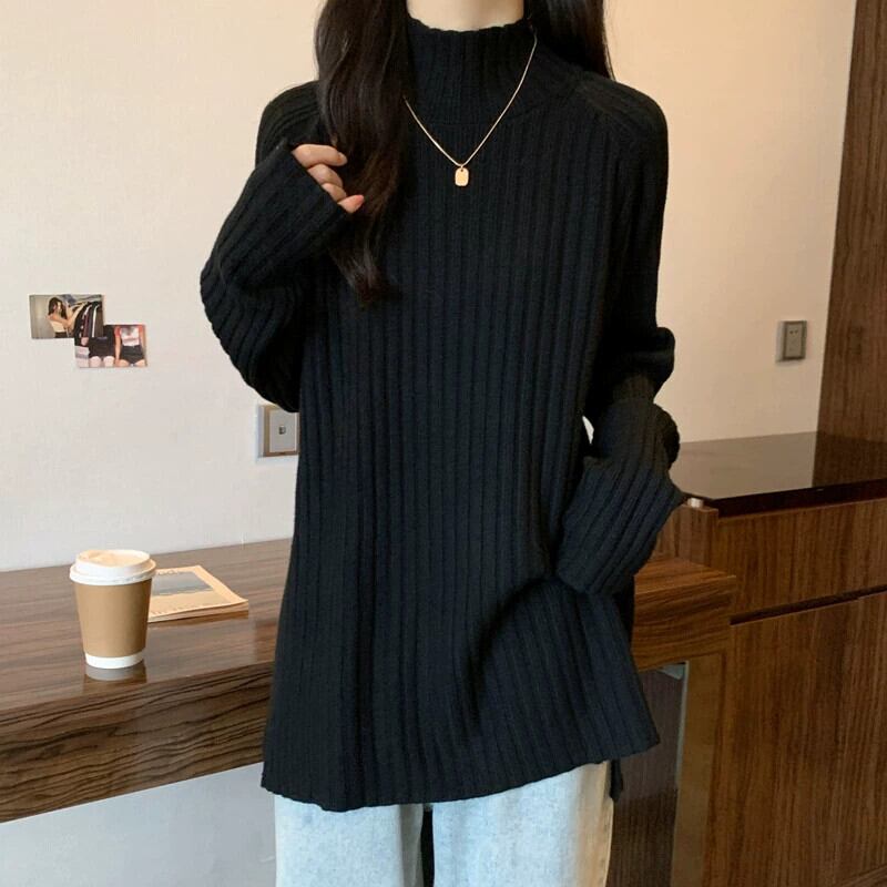 プラスサイズの秋と冬の新しいセーターファットミリメートル女性フレンチスリムハーフタートルネックセータールーズスリミングトップトレンディ 大きめサイズ オータム 秋物 ウィンター 冬物 8884136226416806