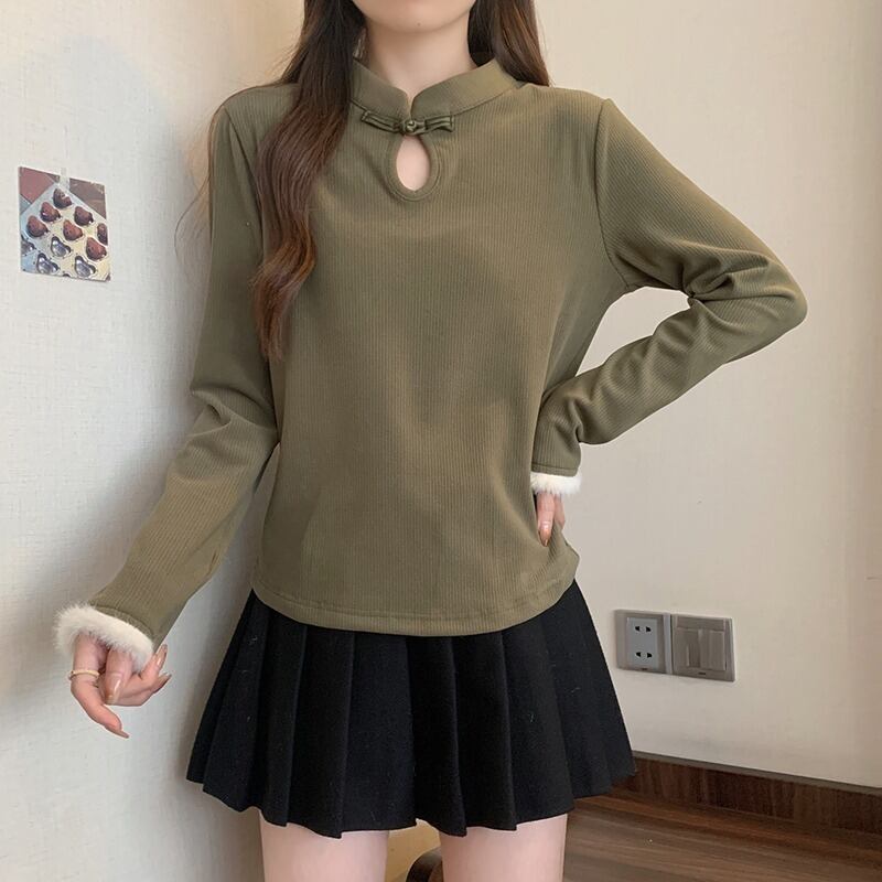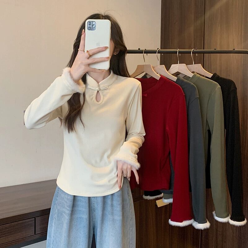 プラスサイズの女性の脂肪 mm 新しい中国風の年齢を減らすトップス冬の新 2023 シャツ多用途痩身肉カバー T シャツ 大きめサイズ ウィンター 冬物 Tシャツ 8884136536021258