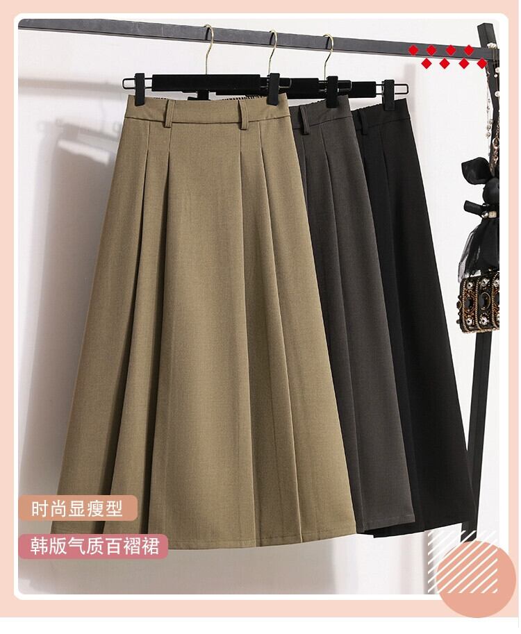 プラスサイズの女性の 2023 秋服脂肪女の子ヒップカバーニッチウエストスカート無地 A ラインスカート 大きめサイズ オータム 秋物 Aライン ソリッドカラー 888418462613708