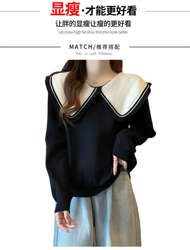 プラスサイズの婦人服ファット mm 秋の新 2023 痩身と年齢を減らす人形の襟ルーズセーターファッショナブルなニットセータートップ 大きめサイズ オータム 秋物 8884171627181498