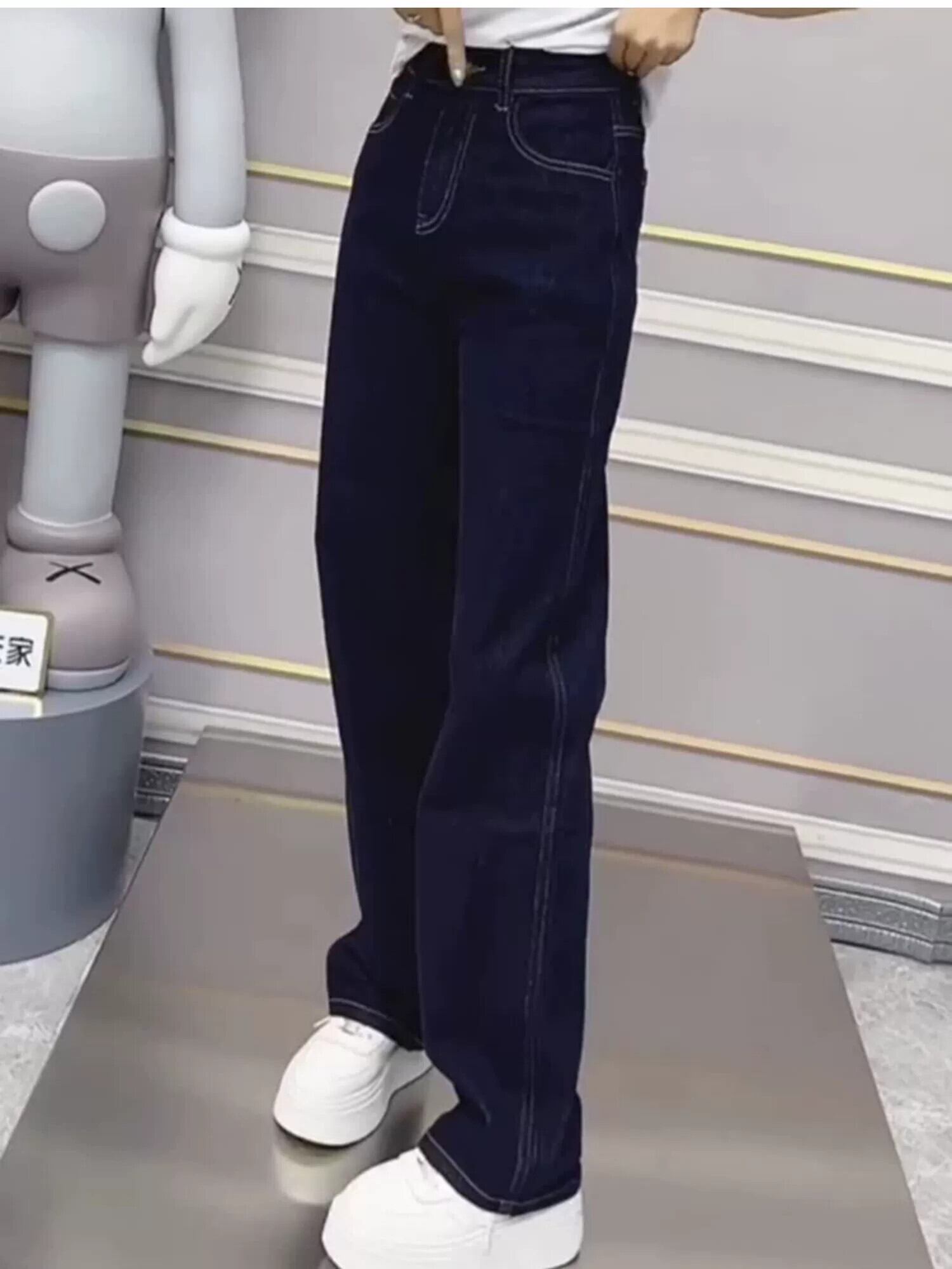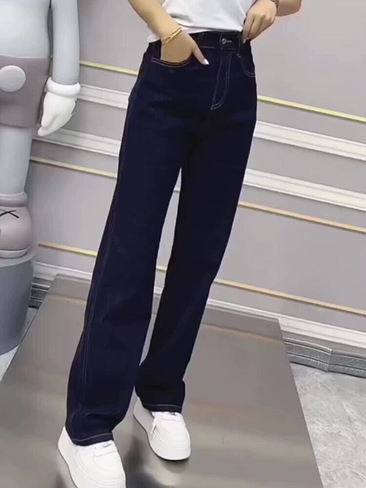 プラスサイズの婦人服脂肪秋の新しいダークブルーストレートジーンズ女性梨型ボディハイウエストスリムパンツ 大きめサイズ オータム 秋物 8884114744914049