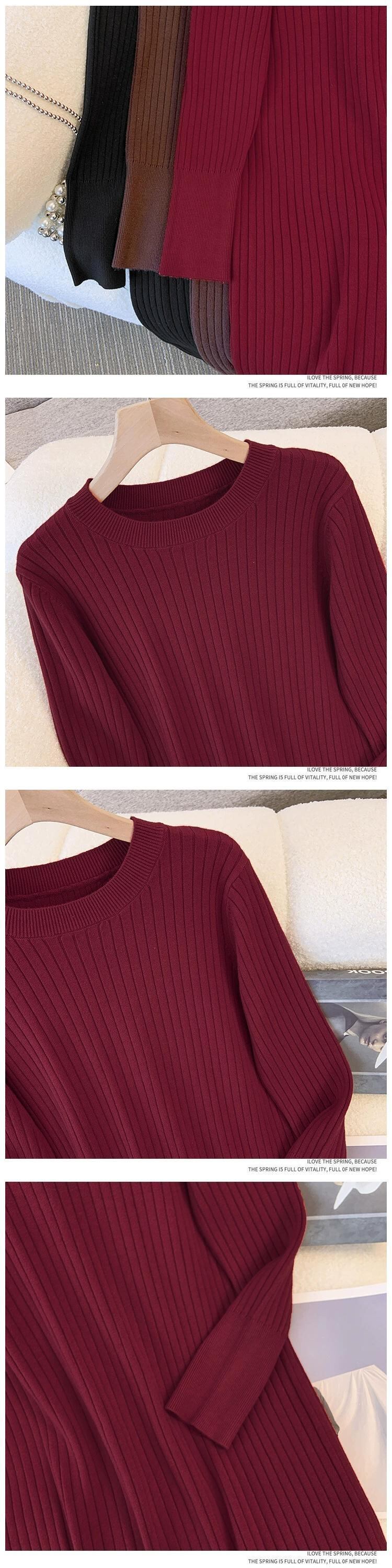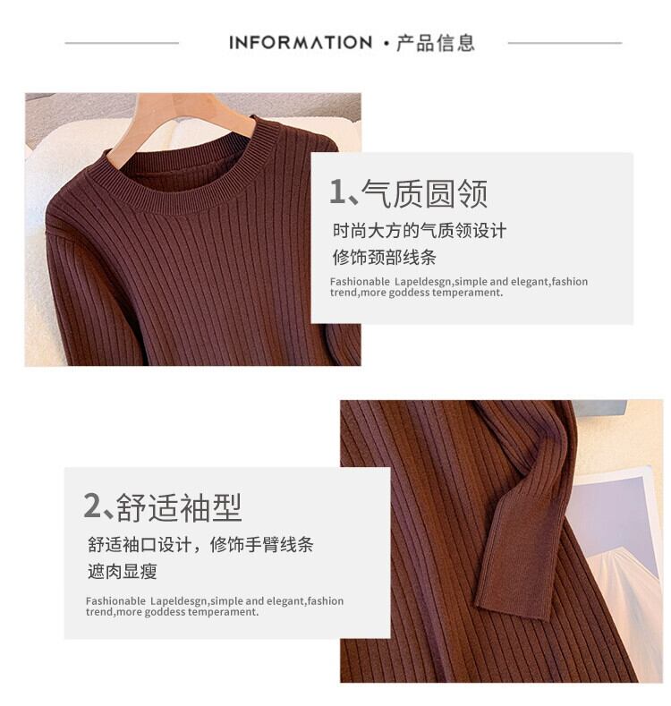 プラスサイズの婦人服 2023 ファットシスター秋の新ボトスカート多用途セータースカートラウンドネック長袖ミッドレングスドレス ロング 大きめサイズ オータム 秋物 Oネック 888415485300434