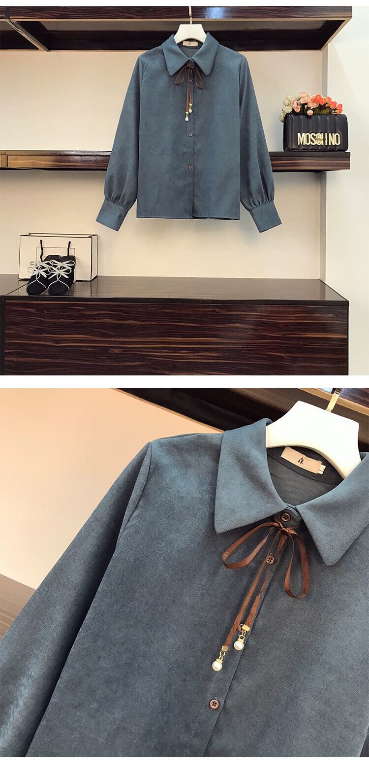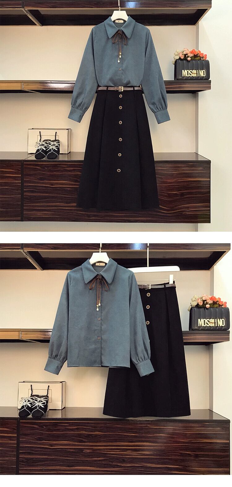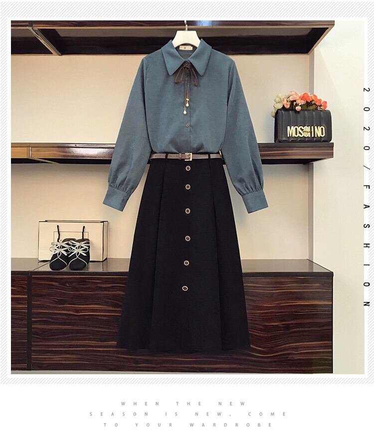 プラスサイズの婦人服 2023 ファットシスター秋の新甘いスタイルスーツ痩身年齢削減シャツスカート 2 点セット 大きめサイズ 大人ガーリー スウィート キュート カジュアル オータム 秋物 8884152709394639