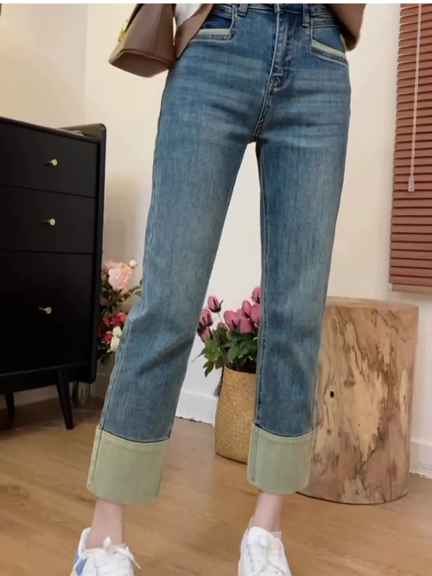 洋ナシ型ボディストレートジーンズ女性秋と冬のプラスサイズ脂肪ハイウエスト痩身カバーアップ弾性 9 点シガレットパンツ ハイウェスト エラスティック 伸縮 大きめサイズ オータム 秋物 ウィンター 冬物 8884144159909281