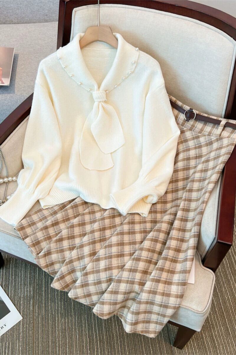 プラスサイズの婦人服脂肪初秋 2023 新しいファッションスーツ年齢を軽減する無地のセーター痩身スカート 2 点セット 大きめサイズ オータム 秋物 ソリッドカラー 8884111792023292