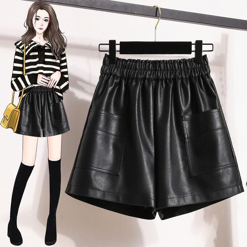 プラスサイズの婦人服 2023 秋冬新スタイルファット mm ハイウエスト梨型体型 a ライン痩身ワイドレッグショートレザーパンツブーツパンツ ハイウェスト 大きめサイズ オータム 秋物 ウィンター 冬物 Aライン ワイドパンツ 8884171122084018