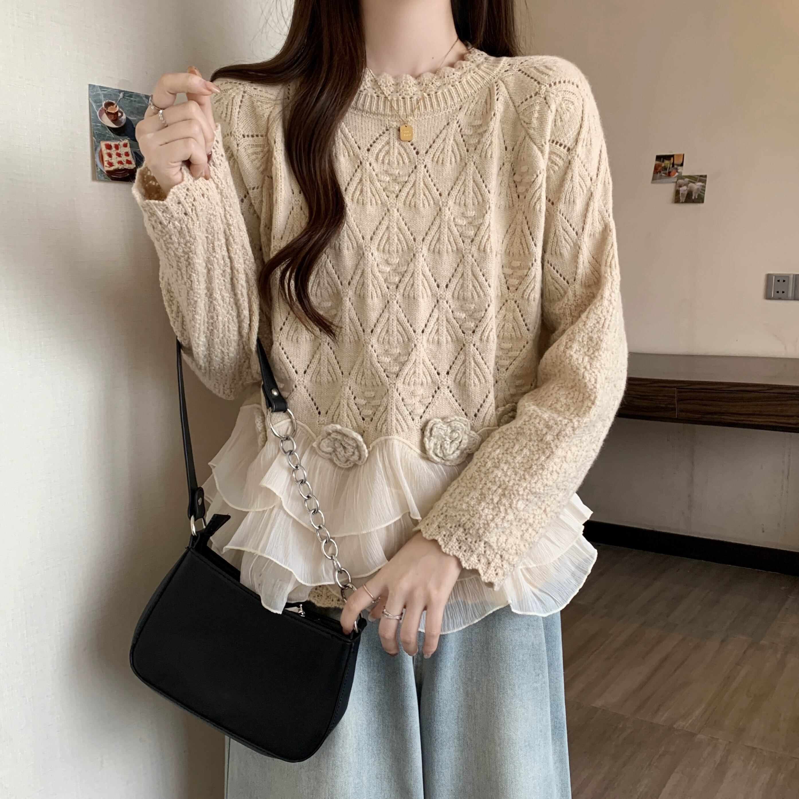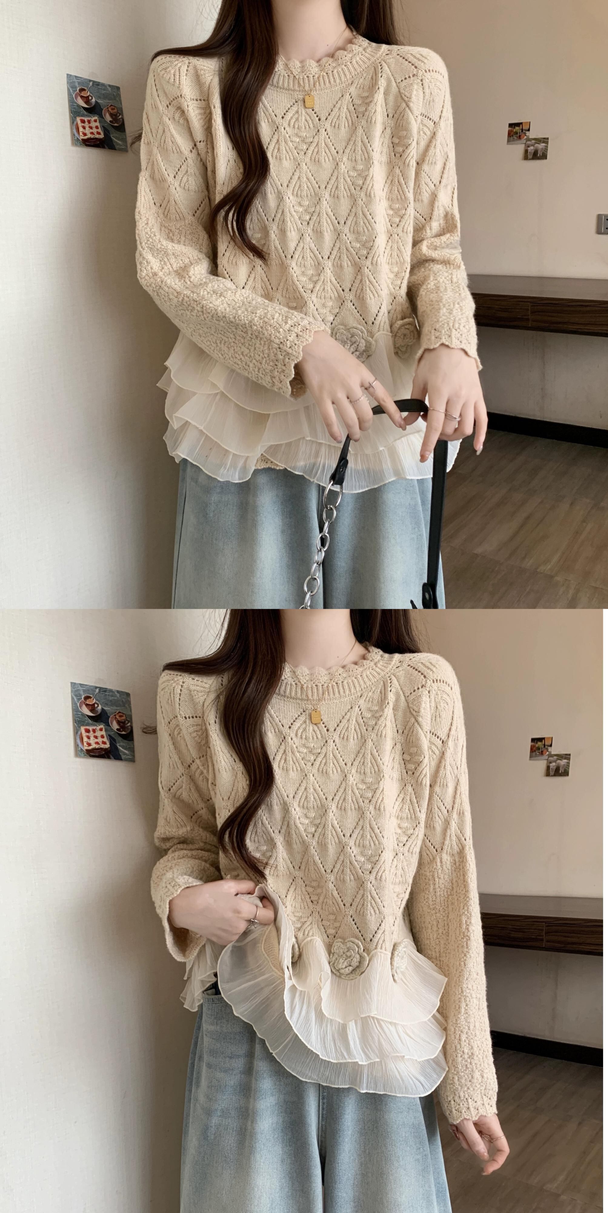 プラスサイズの女性のセーター女性の 2023 秋の新デザインニッチルーズ痩身ローズレースセーター 大きめサイズ オータム 秋物 8884140990569215