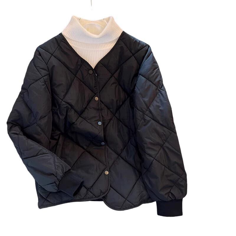 2023 プラスサイズの女性のハーフタートルネック無地チェック柄ダウンジャケット脂肪ミリメートルコットンコート痩身西洋スタイル暖かいジャケットトレンド 大きめサイズ ソリッドカラー 8884188924116843