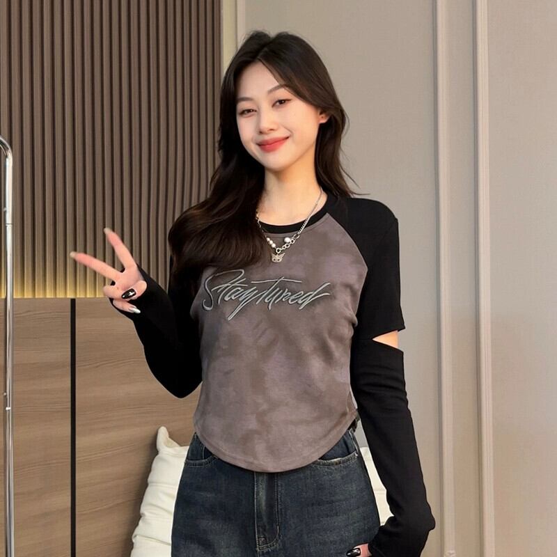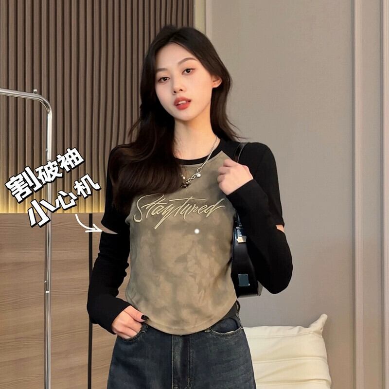 プラスサイズの婦人服は今年人気です2023トップス新しいドーパミン秋服デザインラグラン長袖Tシャツ ロング 大きめサイズ オータム 秋物 8884148105565247