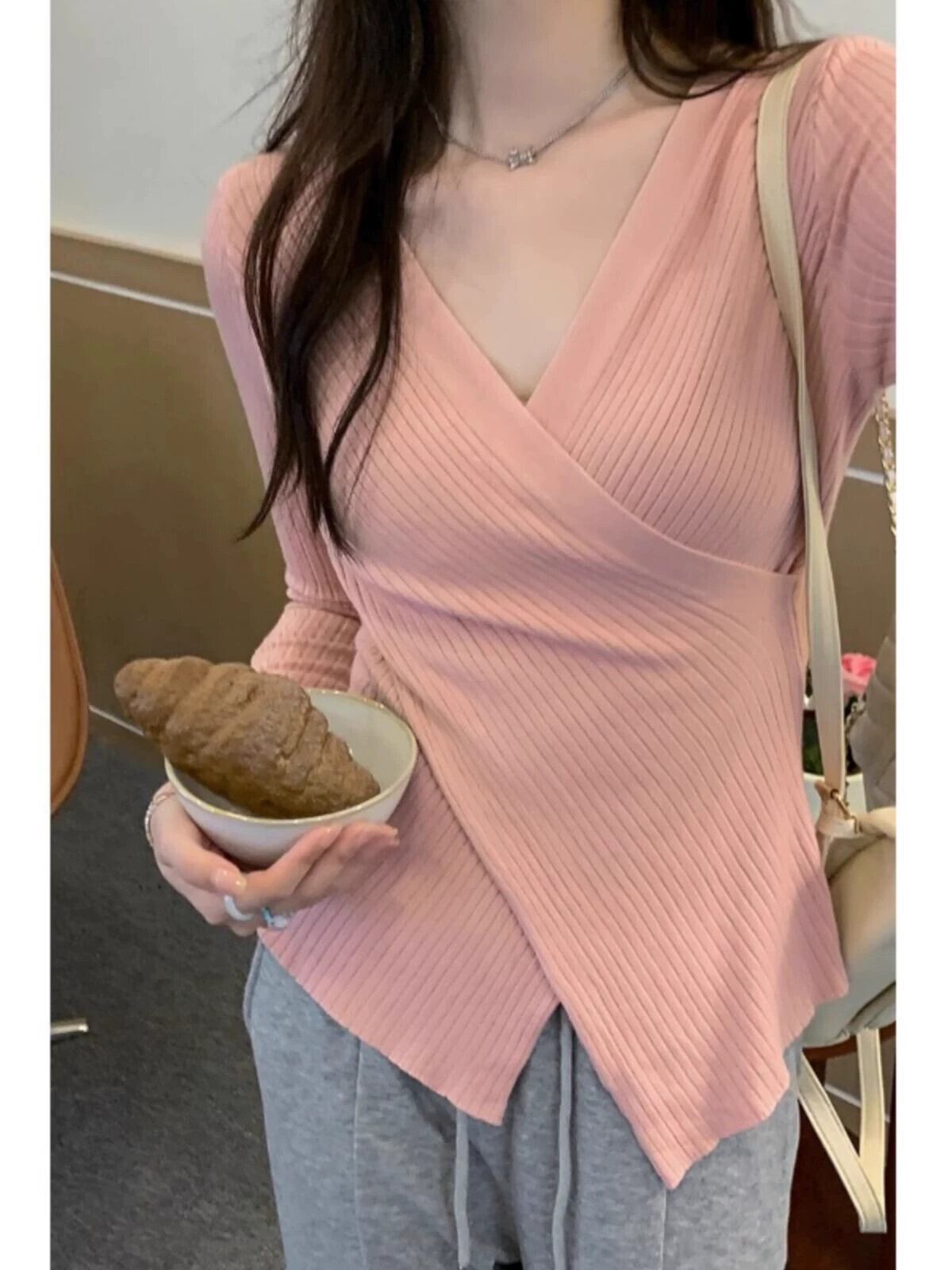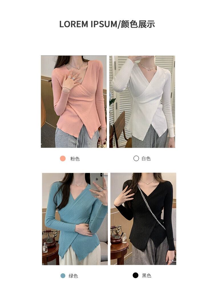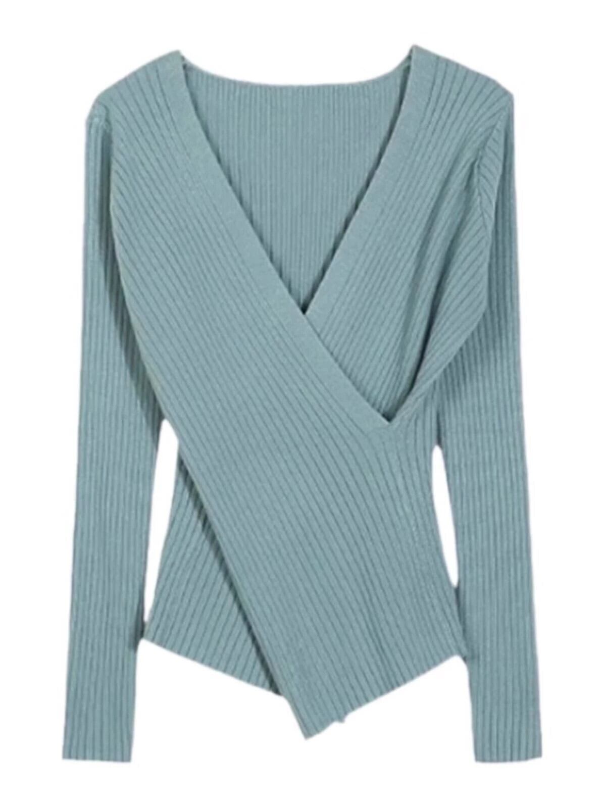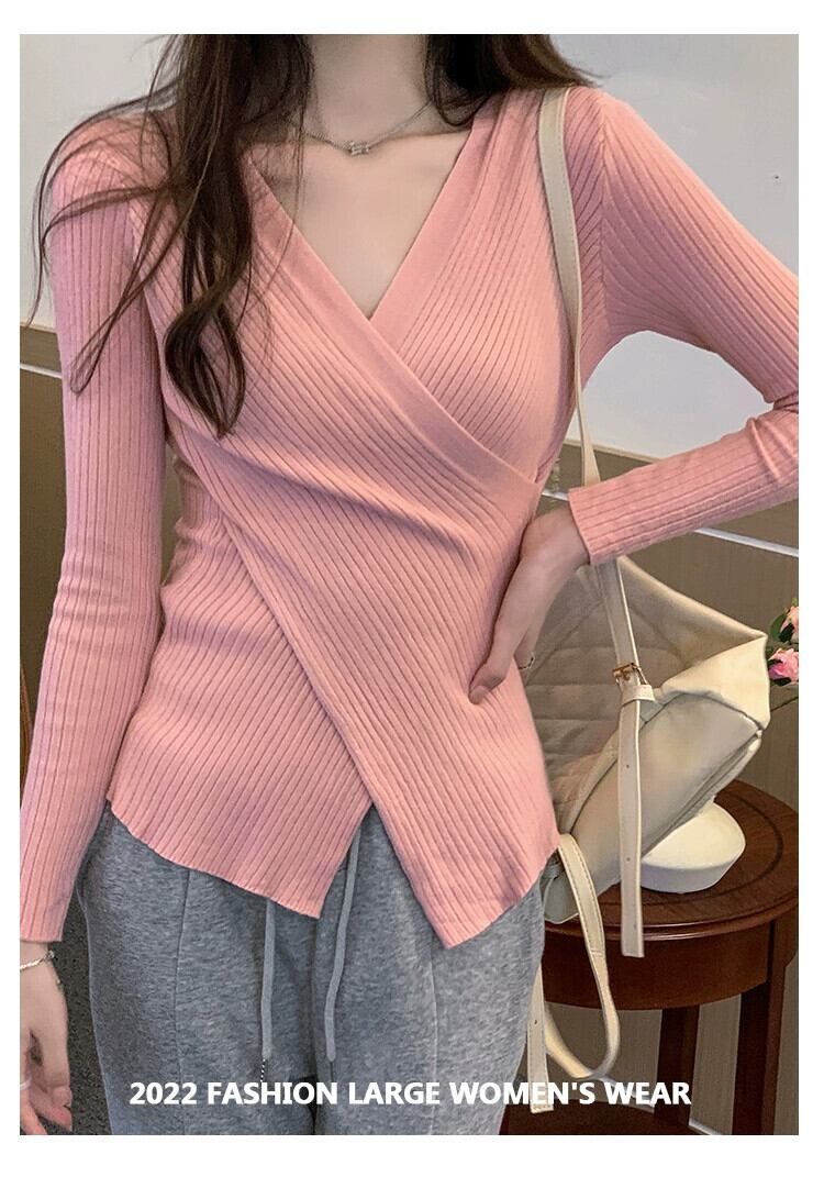 大きいサイズ秋冬変則Vネック右肩クロスニットセーター太くてスリムな女性、万能な長袖ボトムシャツトップス ロング 大きめサイズ オータム 秋物 ウィンター 冬物 8884111352952826
