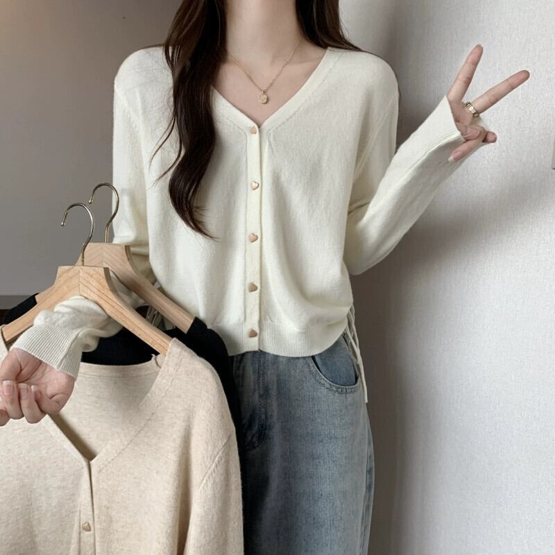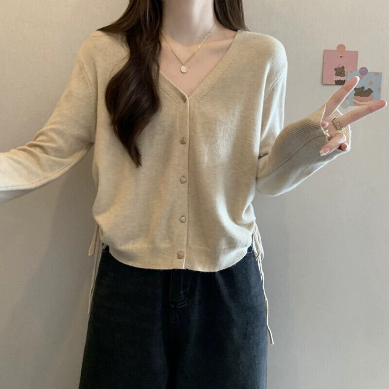 プラスサイズの女性の 2023 秋と冬の新しいファット MM ラブバックル不規則な巾着裾 V ネックニット長袖カーディガン ロング 大きめサイズ オータム 秋物 ウィンター 冬物 Vネック 8884179469166173